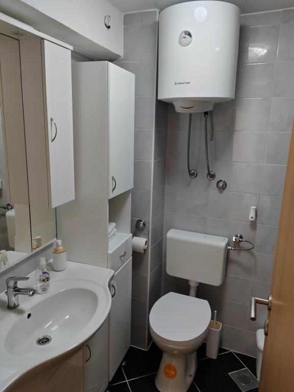 House for up to 5 people with a balcony and a beautiful view of the sea and yacht marina. Guests have parking, free wifi, air conditioning, TV with plenty of channels, Netflix... You only need a 5-10 minute drive to the first beach. Solaris is nearby where you have an indoor and outdoor Aqua park, so it works all year round, the city center is a 10 minute drive away, we have 4 fortresses that are beautiful to visit, two national parks, and much more. The house is ideal for a family vacation and relaxation with a view of the sea. The quiet location allows for a pleasant stay, and the balcony is perfect for morning coffee or evening relaxation. I am always at your disposal for any additional information.