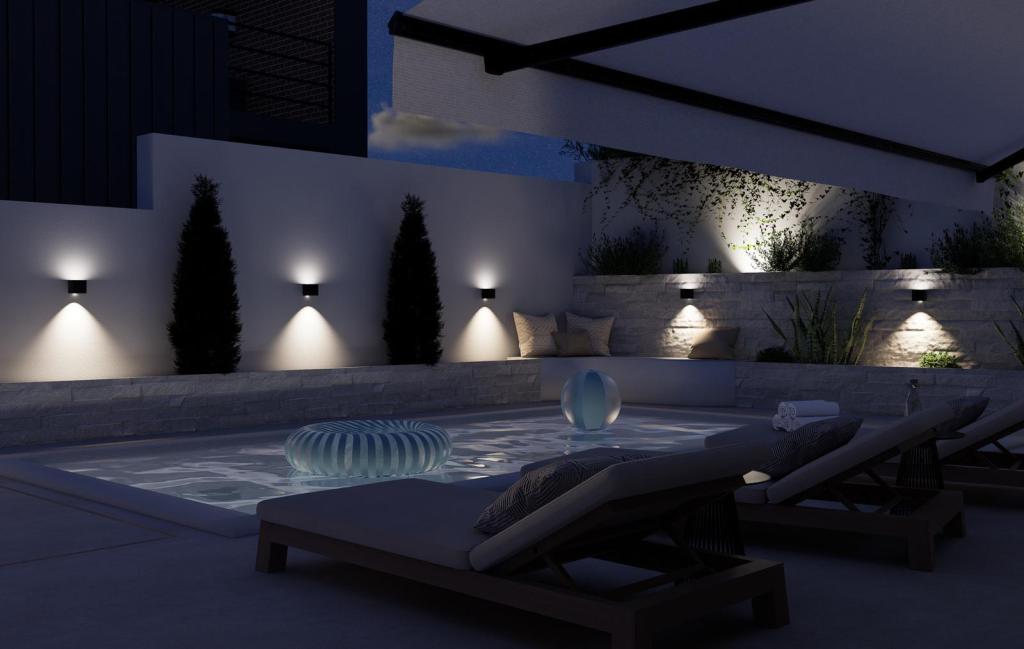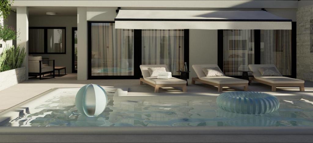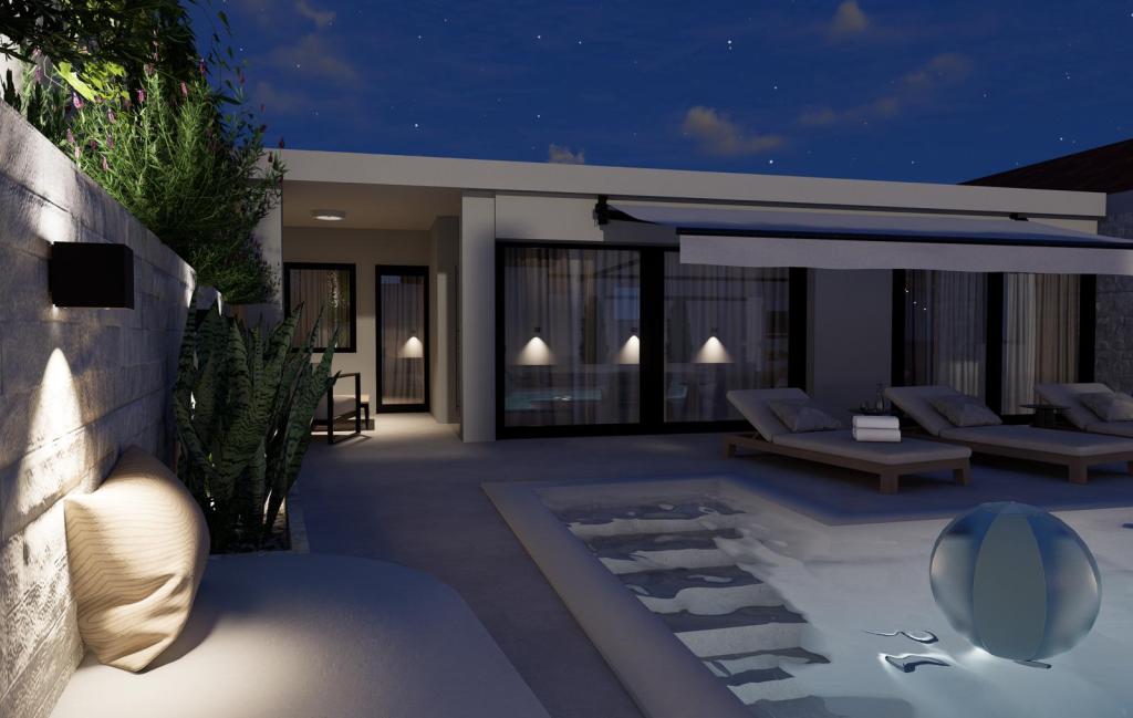 Holiday home with pool – first row to the sea, Mandalina, Šibenik. Located first row to the sea on the exclusive Mandalina peninsula, this modern holiday home offers the perfect combination of privacy, comfort and Mediterranean atmosphere. With an open view of the sea, the city of Šibenik, it is an ideal choice for guests looking for a quiet, yet prestigious location within easy reach of all amenities. ABOUT THE PROPERTY The house is rented as a whole and consists of: -spacious and bright living room with access to the yard -fully equipped kitchen and dining room -2 bedrooms, each with its own bathroom and air conditioning -private yard with swimming pool -garage + additional parking space OUTDOOR AREA -Private pool -Sundeck with deck chairs + lounge -View of the sea and the city -First row to the sea LOCATION – MANDALINA PENINSULA -Mandalina is one of the most attractive and peaceful areas of Šibenik -immediate proximity to the sea and promenade -proximity to D-Marina Mandalina (nautical, restaurants) -5 minutes drive to the old town