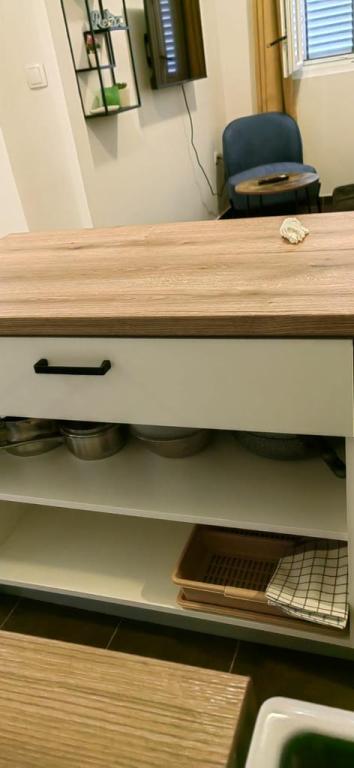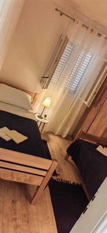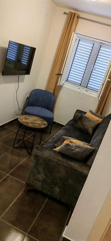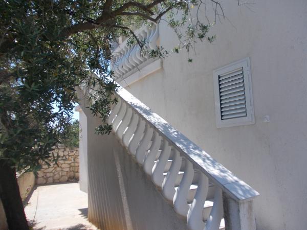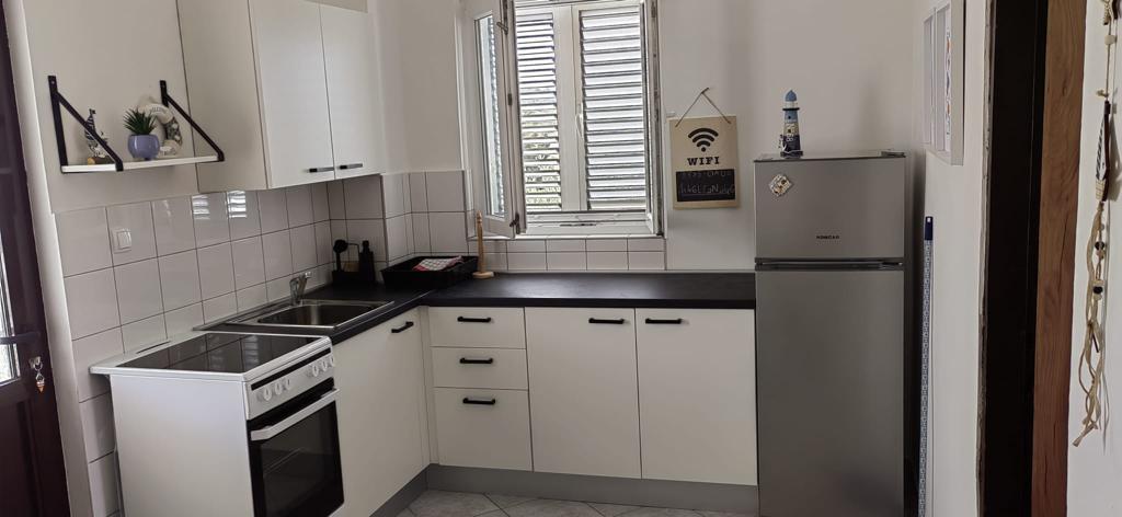 New apartments on the ground floor and on the floor of the house with one or two bedrooms and associated premises. The ground floor is a spacious garden with olive trees in which is a large barbecue on the use of guests. From the blue apartment, upstairs from both rooms open onto a spacious terrace overlooking the place. One bedroom apartment is also on the third floor, one bedroom on the ground floor.