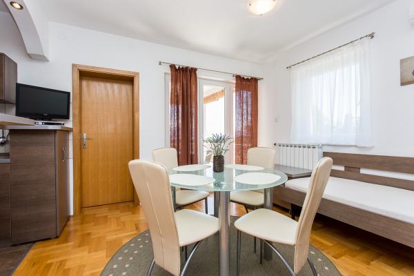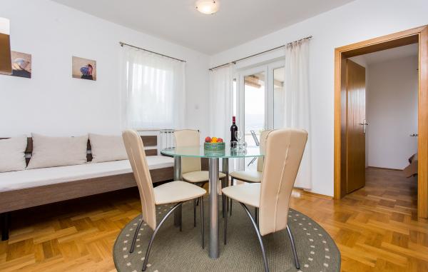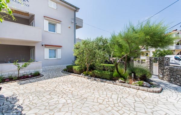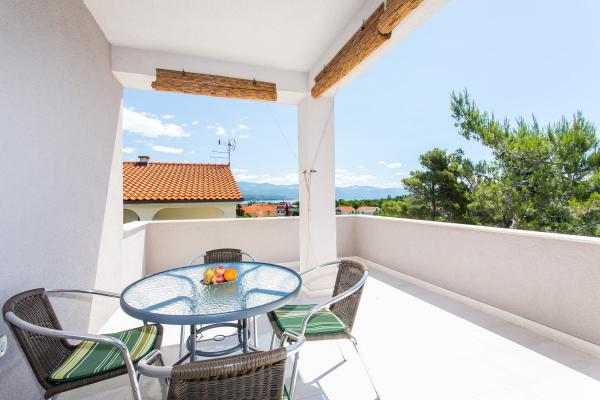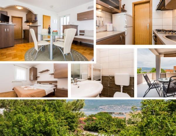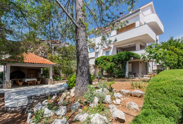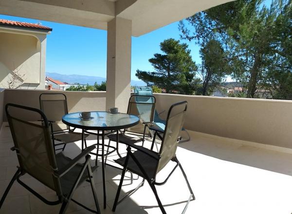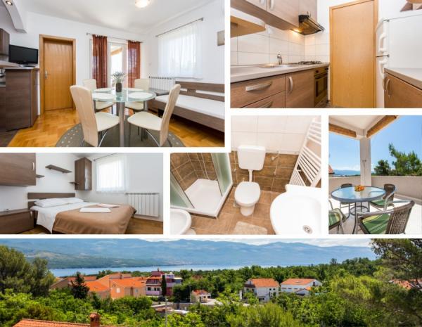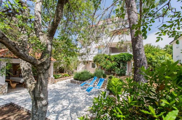 Our family house \Villa Maslina\ is located in a quiet part of Silo, on the east coast of the island of Krk. It has four modernly decorated apartments of type 2 2, four star category. They are the same size and each has a large terrace overlooking the sea, bathroom, bedroom and kitchen and living room. They are equipped with air conditioning, central heating, LCD TV with satellite receiver, safe, alarm system and wireless internet. In the courtyard in front of the house, one of the six shady parking lots will protect your vehicle from the hot sun. An external video surveillance system is also there to keep your property safe. We have prepared a carousel, swings, bottles and other facilities for your children so that they can enjoy the game in nature. In the gazebo with a large fireplace and a small kitchen, built behind the house, you can enjoy grilling. We invite you to visit us and feel all the positive energy that we have built into the home and garden.