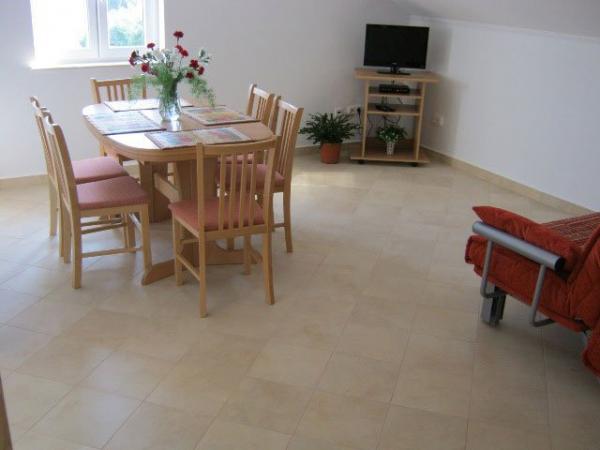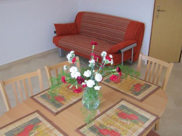 Type Studio 4 2, category 3, attic of 55 m2, lounge and kitchen are in one room, size (lounge, dining-room or kitchen) 25 m2, balcony; 8 m2, terrace; 50 m2, heating (all rooms), air conditioning (all rooms), smoking allowed in apartment, pets welcome (in advance), view of: sea and green area (room), sea (lounge)