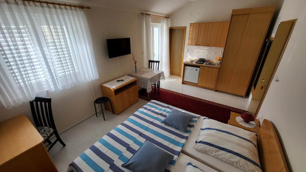 For your unforgettable vacation in the beautiful bay of Slano we offer several apartments and rooms, at a good price. Our facility in Slano is close to the center and only 80 meters away from the sea. You can choose from apartments, studio apartments and rooms. Everything is newly renovated and fully equipped. All apartments and rooms are air conditioned, have satellite TV and a balcony. We also offer parking in front of the house.
