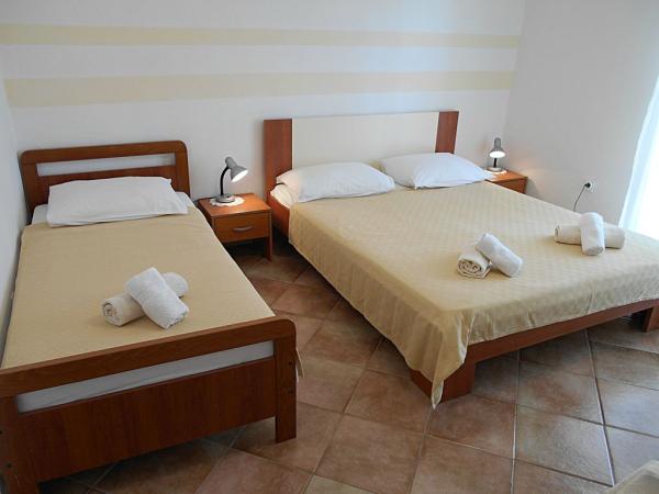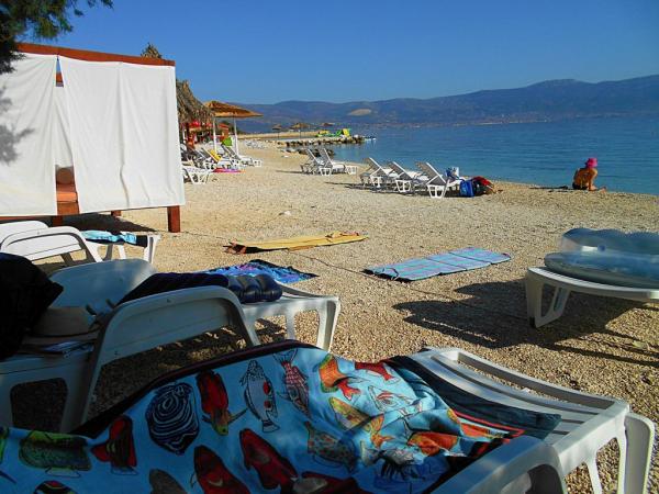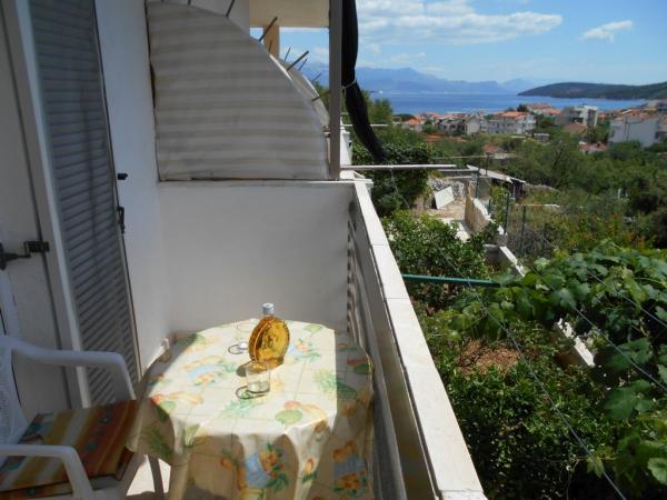 Apartments Boa Ciovo Slatina Trogir, Croatia: The house is surrounded by a garden with trees, flowers and bushes. Decorated with stone walls in a Mediterranean style. To collective use available: garden shower and grill, a place for socializing, washing machine (on request) and a summer kitchen. For guests are free parking, wifi, clime. Apartment for 5 people: 50m2 with two balconies, bedroom with two single beds and a room with a double bed and a sofa. Bathroom with bath. The apartment is air conditioned, TV / SAT, WIFI. Studio apartment for 3 persons: apartment of 20m2 with balcony, bathroom with shower, the apartment with kitchen equipment and utensils. The apartment is air conditioned, TV / SAT, WIFI. The apartments are located on the first floor of the two storey house, overlooking the green panorama of Ciovo and the Adriatic Sea. Parking is on the property. Supermarket, post, ambulance, playground, restaurants and marine sandy beaches are located 150-250 m.