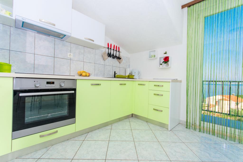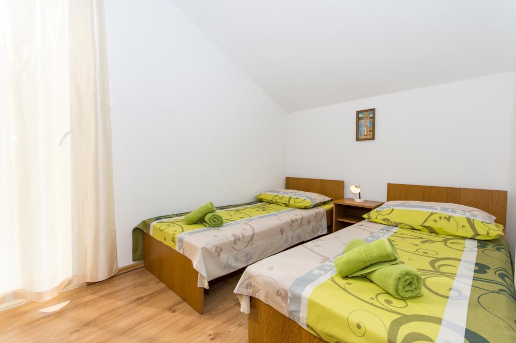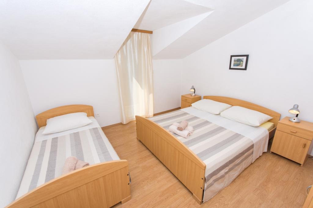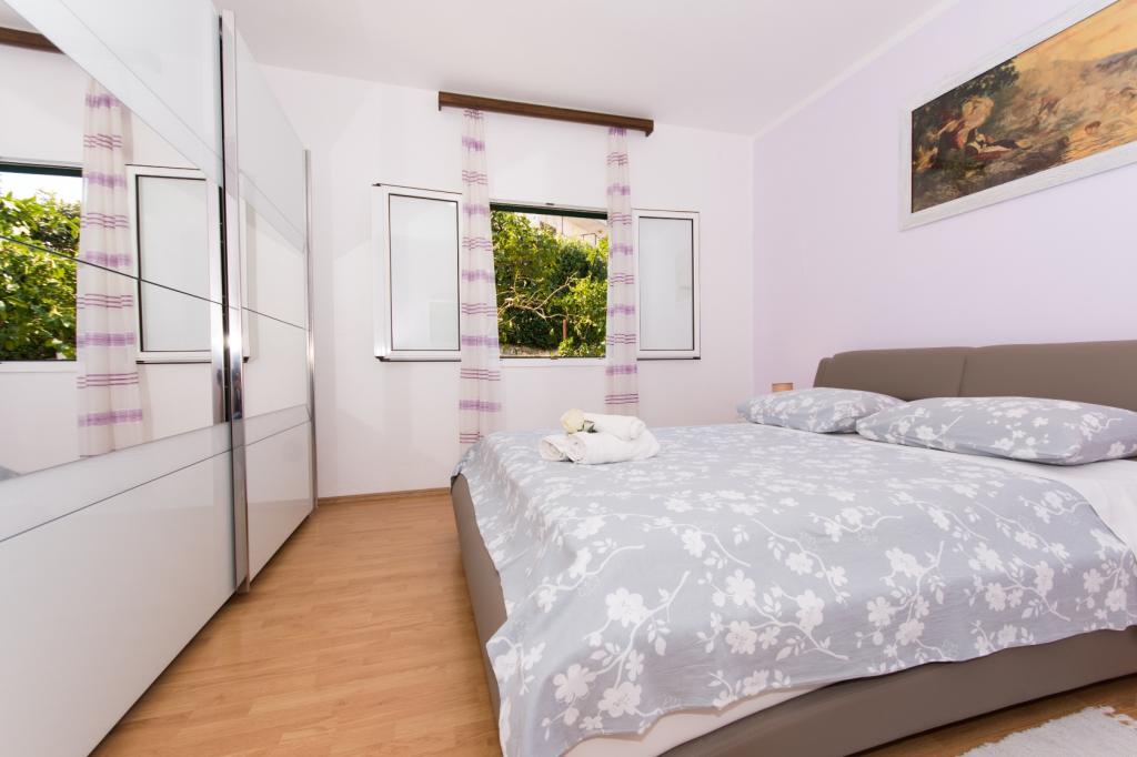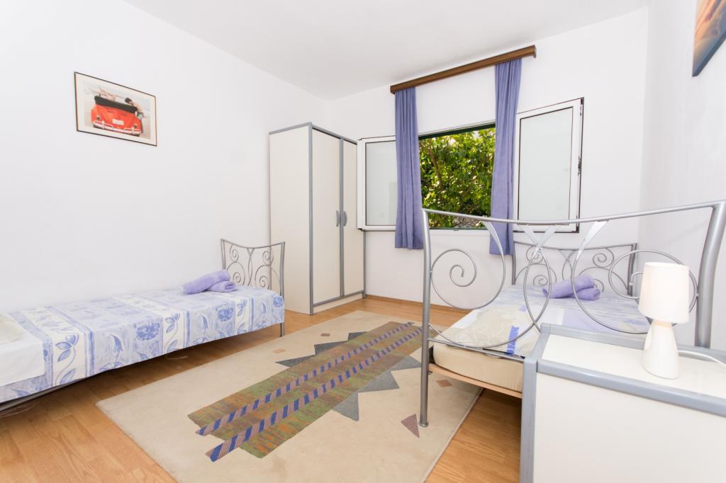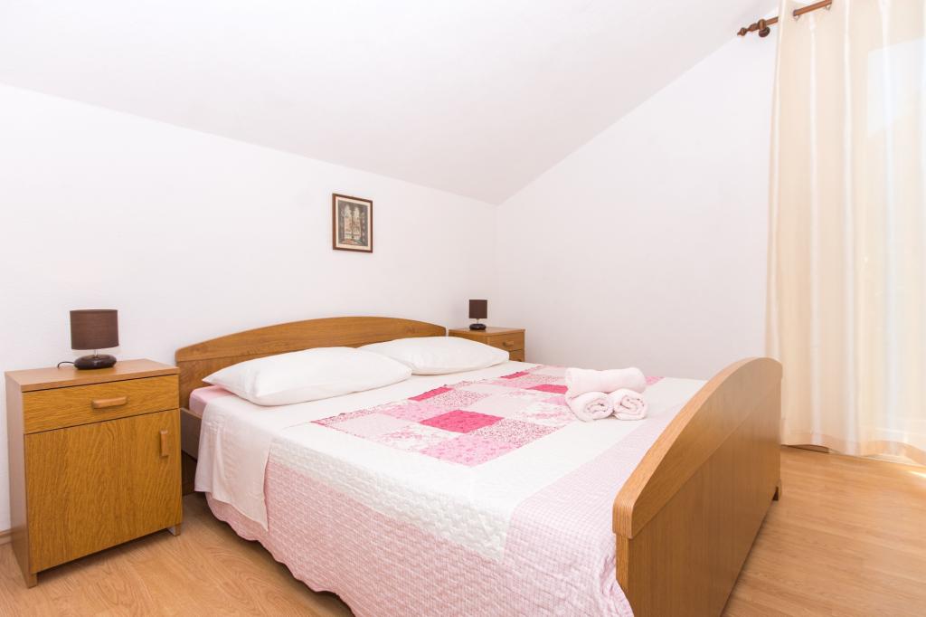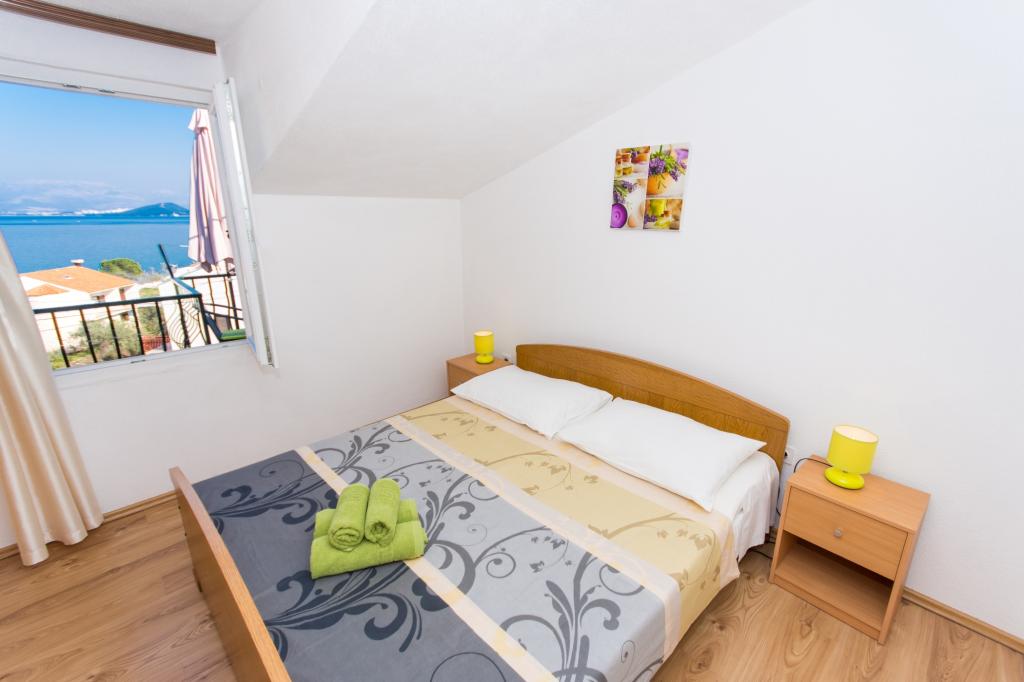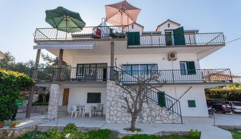 Apartments Anka are located in Slatine on the island of Čiovo. They are 5 km from Trogir. They are connected to Split by a boat line. The apartments are located on the first and second floors of a family house. The apartment for 6 people is located on the first floor and consists of 3 rooms, living living room, kitchen and bathroom. On the second floor there are two apartments each with two rooms, a kitchen and a bathroom. All apartments have terraces with a wonderful view of the sea. All apartments have a separate entrance. The house is surrounded by Mediterranean plants and a garden for children. Guests parking and use of the outdoor grill are provided.