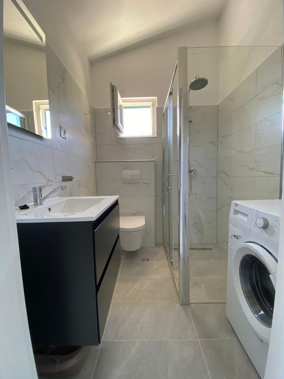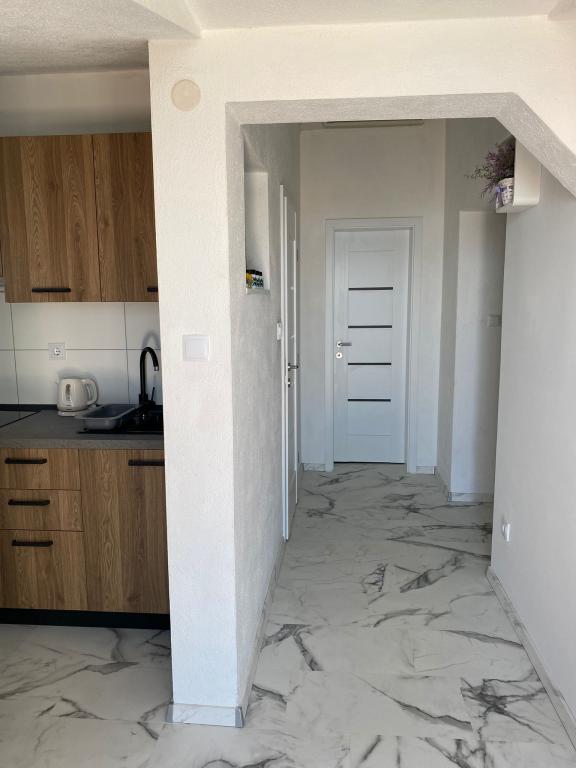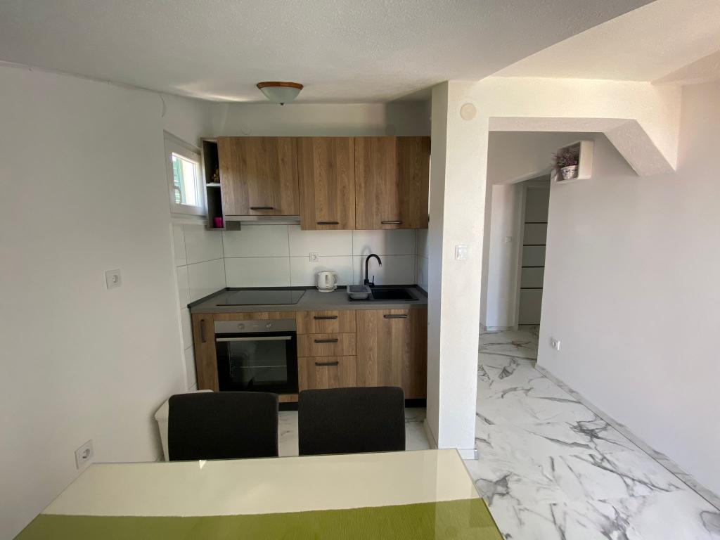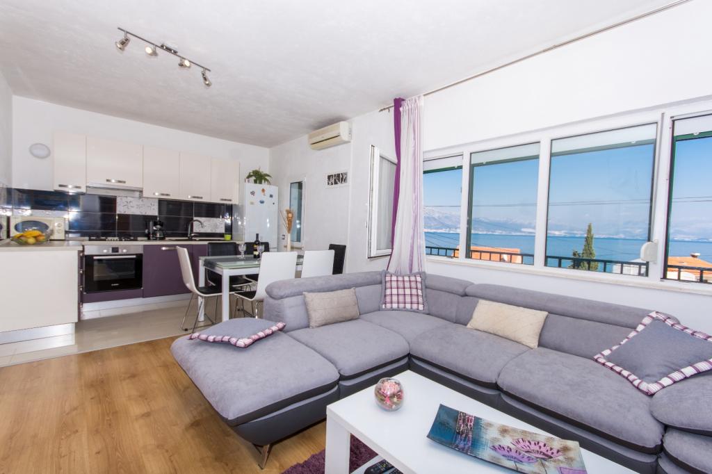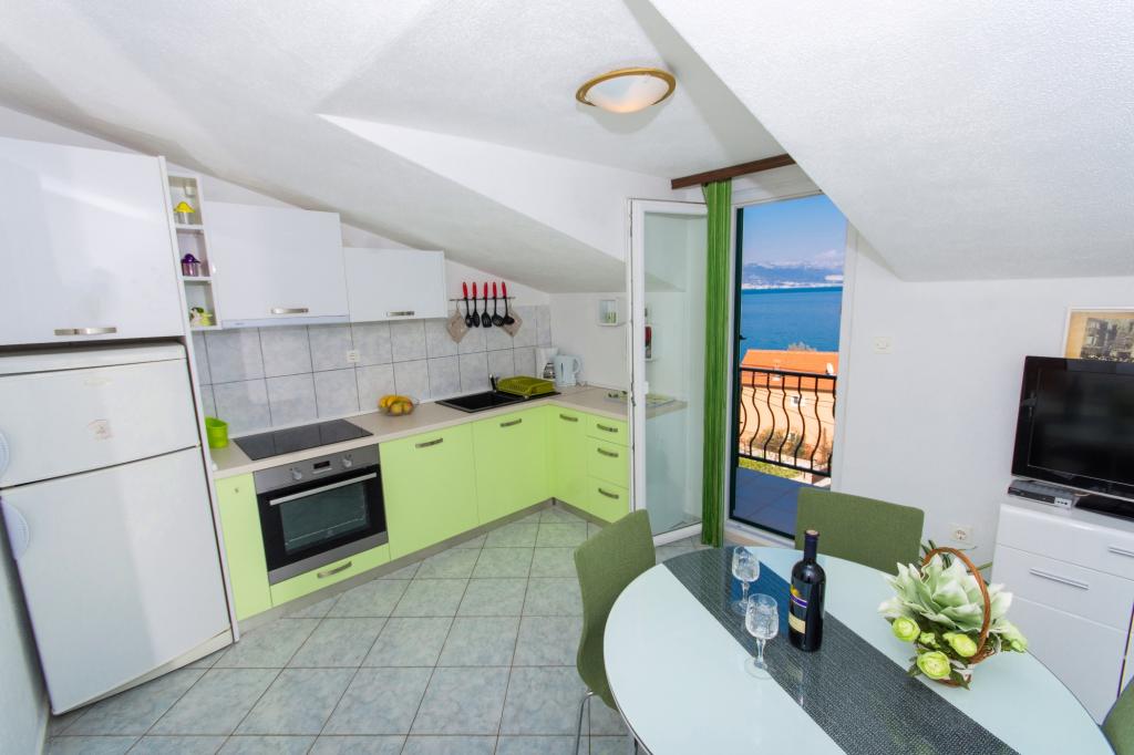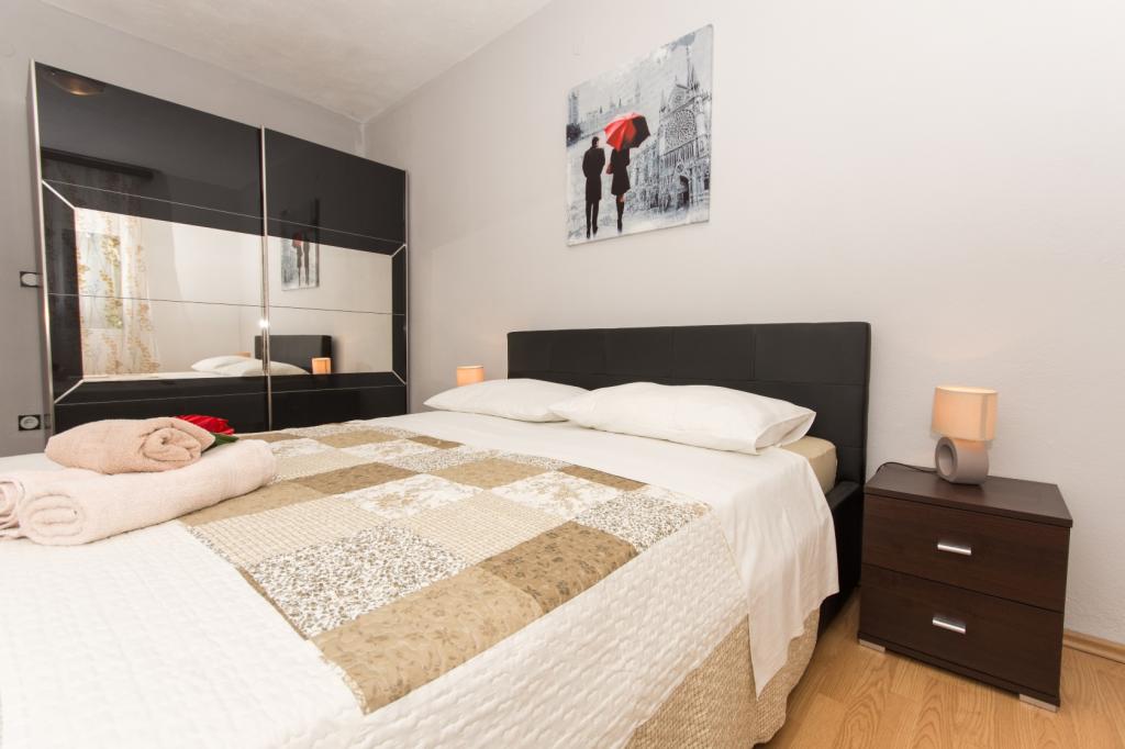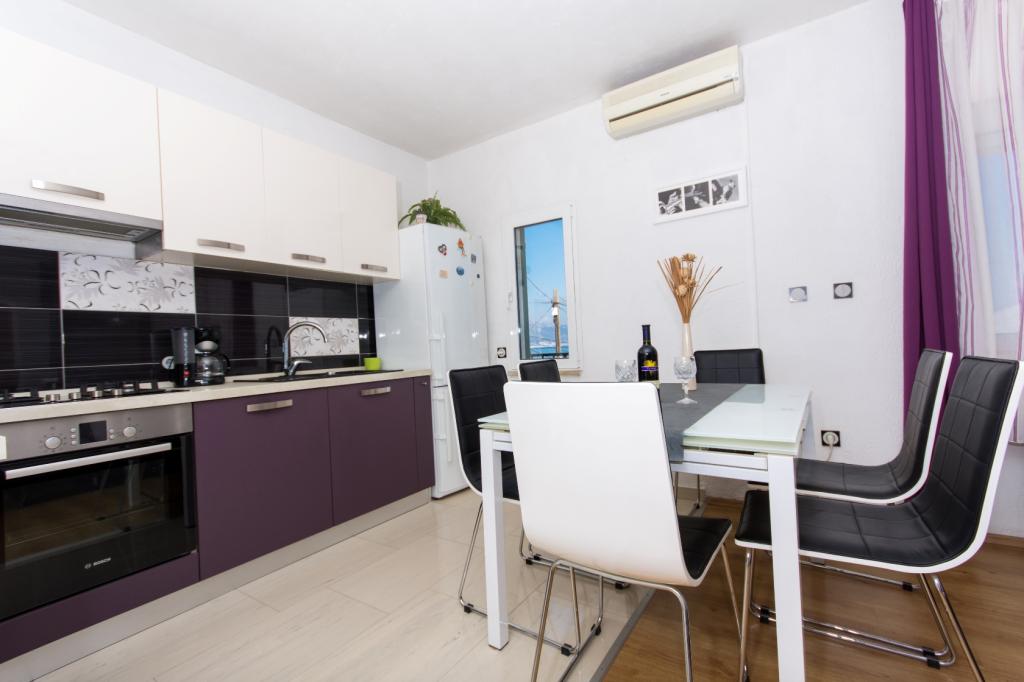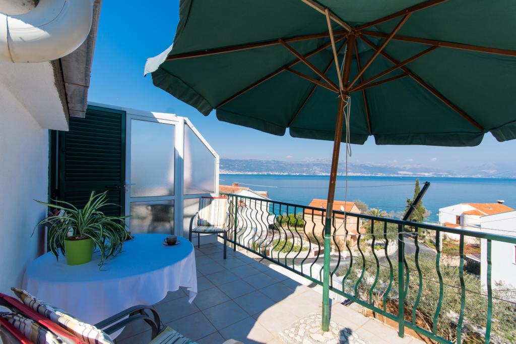 Apartments Anka are located in Slatine on the island of Čiovo. They are 5 km from Trogir. They are connected to Split by a boat line. The apartments are located on the first and second floors of a family house. The apartment for 6 people is located on the first floor and consists of 3 rooms, living living room, kitchen and bathroom. On the second floor there are two apartments each with two rooms, a kitchen and a bathroom. All apartments have terraces with a wonderful view of the sea. All apartments have a separate entrance. The house is surrounded by Mediterranean plants and a garden for children. Guests parking and use of the outdoor grill are provided.