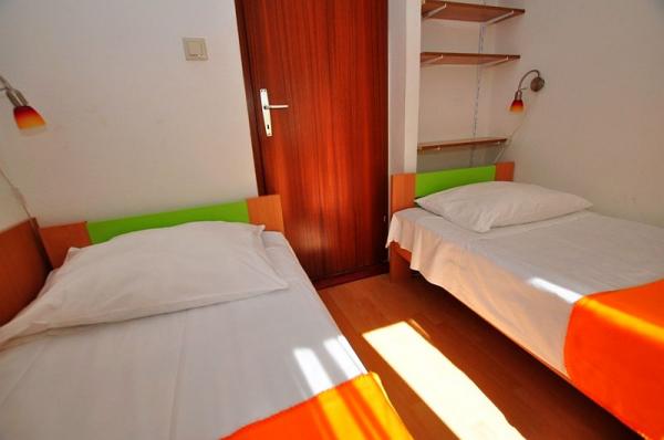 The apartments are located in a family house. A total of 16 people can be accommodated in 3 suites. Apartment A1 (6 2), 65 m2, for 8 persons, 3 bedrooms (two with double bed), living room sofa bed for 2 persons, fully equipped kitchen, bathroom with tub and toilet, separate WC, large organ terrace 40 m2 with sea view. It is fully equipped and air-conditioned. Situated on the ground floor of a family house and facing the sea. Suitable for two families with children. Apartments A2 (2 + 2) a, 35 m2, for 4 persons :. Bedroom with double bed, living room / kitchen with corner bed for two persons, bathroom with shower cabin,, terrace. Fully equipped and air-conditioned. Situated on the second floor of a family house, facing the sea. Apartment A2 (2 + 2) b, 24 m2, for 4 persons. . Bedroom with double bed, living room with sofa bed, fully equipped kitchen, bathroom with shower, terrace with beautiful sea and hill views, located on the second floor. .