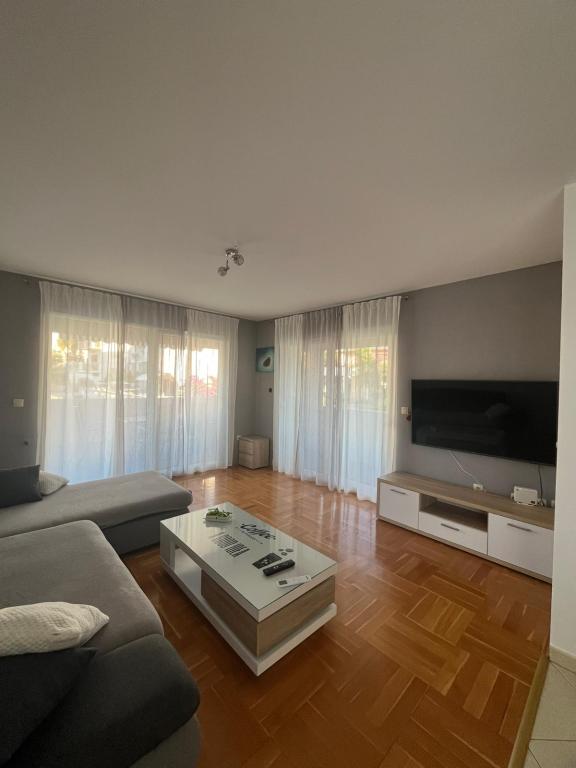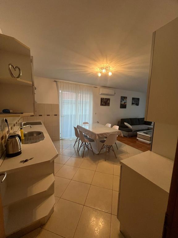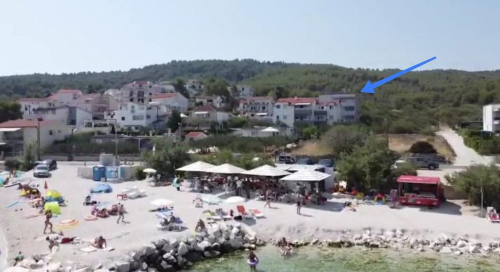 The apartment is located in a quiet location in the village of Slatina. From the town center is 2km. Travel distance from the beach is 60m. The apartment has three bedrooms, kitchen, dining room, living room, bathroom ... It has internet, satellite, washing machine, dishwasher, ...