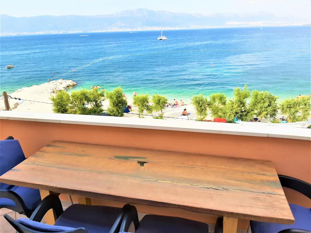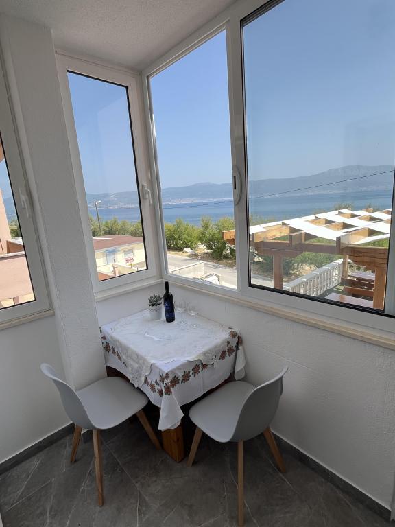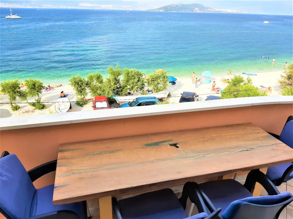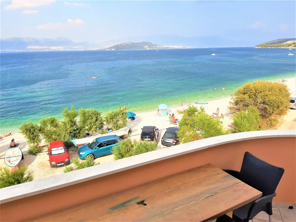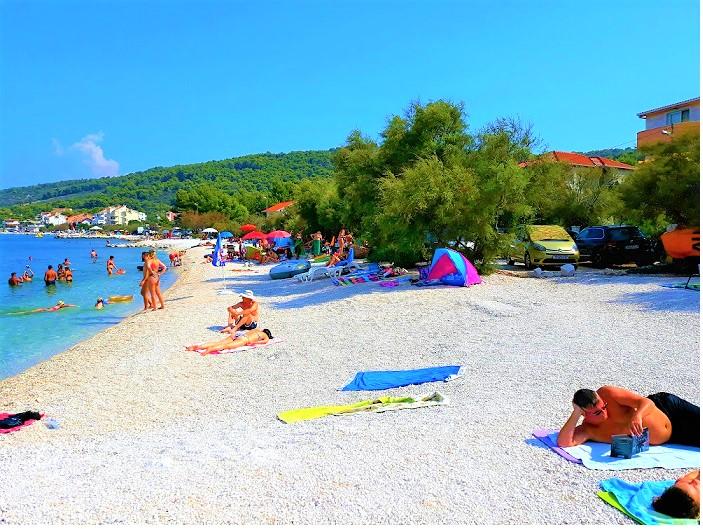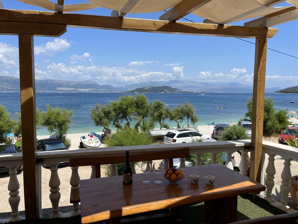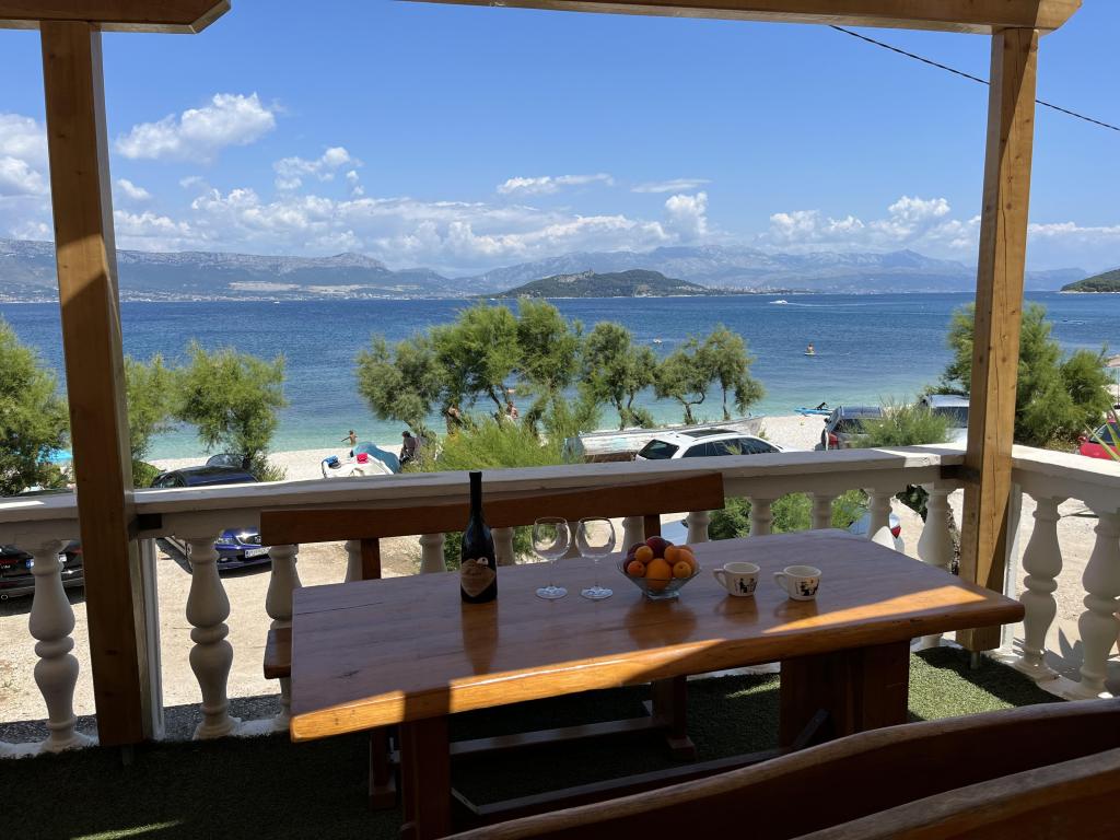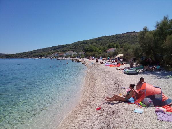 The apartments are located in the immediate vicinity of the beach, only 10 meters away, with a beautiful sea view. Very clean, equipped with all the necessary things. The owner is very kind, helpful and takes care of her guests. Arranged beach with fine pebbles and an outdoor shower. The place is in a quiet area. However, it is close to bars, restaurants and a water playground. Close to excursions to Trogir and Split. You can get there by public transport and ferry.