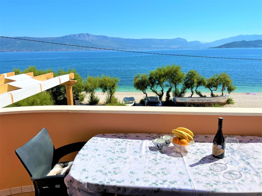 Fully and modernly equipped apartments in a quiet area of Slatina, located first row to the sea, 8 meters walk to the beach; the facility is located a 4-minute walk to the center. In front of the apartments is a pebble beach, ideal for swimming. From the terrace of the apartment there is a beautiful view of the beach, the sea, Kaštela Bay, Split, Trogir and the town of Slatina itself. The apartments are comfortable, equipped with satellite TV, wireless internet and air conditioning. In the garden of the house there is a summer shower and a grill available to guests. Parking is provided for apartment guests. Slatine is a small fishing village where you can buy fresh fish, local vegetables and olive oil. In the summer, festivals and sports events are held. Restaurants, pizzerias, taverns, coffee bars and shops are located in the very center of the town, just a 4-minute walk along the sea from our facility. On the southern side of the island of Čiovo, only 2 km from the apartment, there is the famous shrine of Our Lady of Prizidnica, which you should definitely visit.