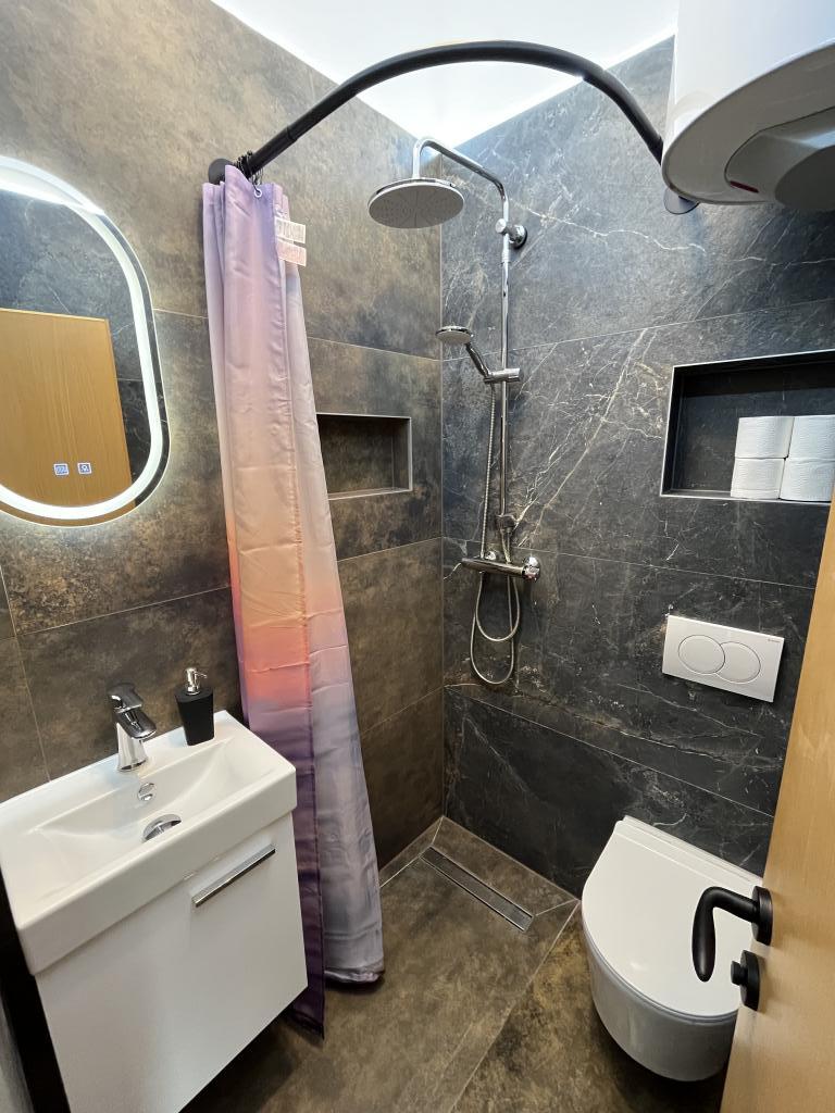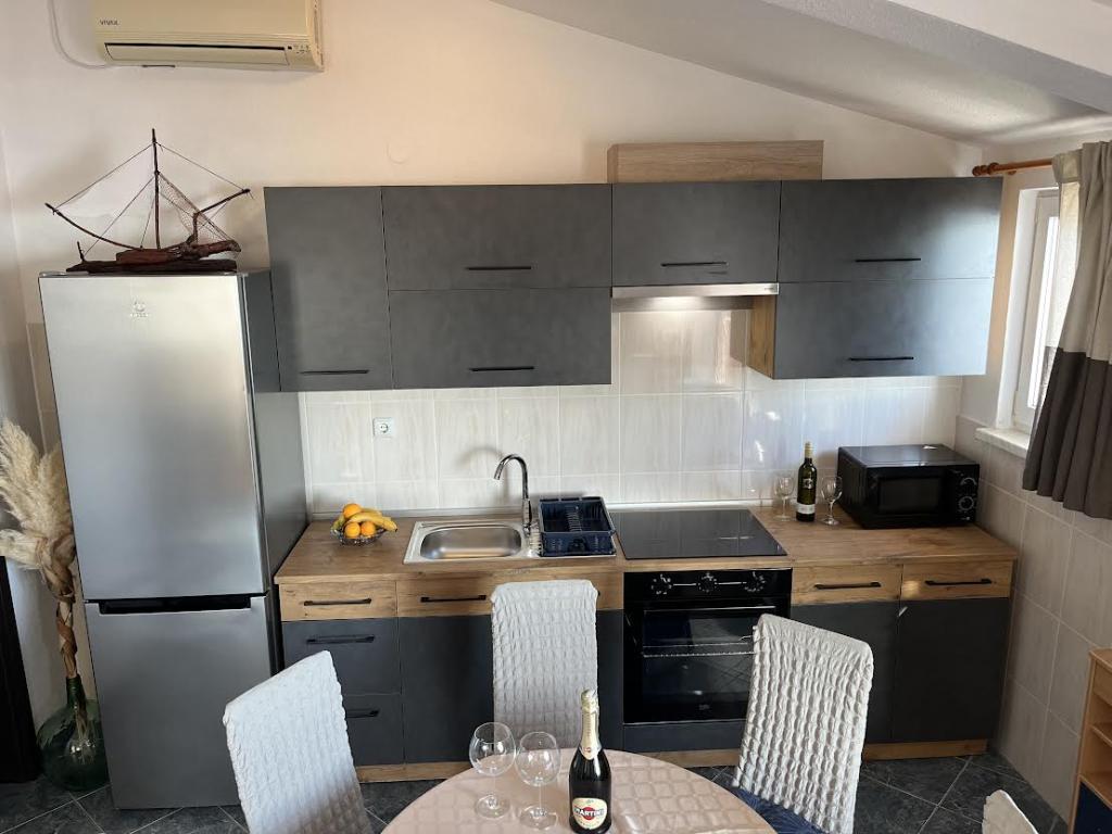 We can only recommend this apartment. Not only was it in a quiet part of Slatine, but it also met our requirements (quiet, away from people, small terrace, ...). The hosts were very accommodating and fulfilled all our questions and requests immediately. We were accommodated in 2+1, two adults. According to the photos, the apartment looked bigger, you might be surprised that the kitchen is in the hall, but everything was clean, quite new. A big advantage was parking in the yard of the apartment and the possibility of using the garage as a storage place for water tools. The beach in front of the apartment is the most beautiful and largest in the whole of Slatine, there was plenty of space on it, people were cleaning up after themselves. The sea is beautifully clean, full of fish! There is a grill and a bar in the accommodation - but we did not use it. According to the host, it is used when there is a larger group of people and they gather for a beer. The nearest larger shop is quite far (1 km) and the restaurant about 800 m by a beautiful walk along the coast. That's why I recommend buying in a bigger city (Trogir - Plodine, Kaufland).