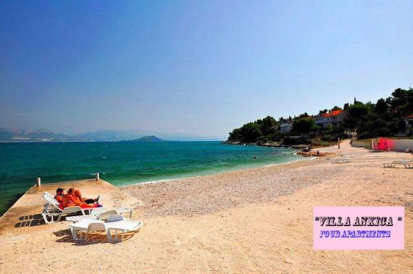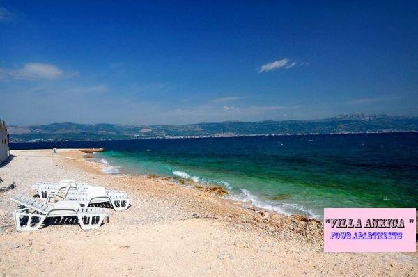 very clean, well maintained and well maintained apartments. Owners come to the utmost to meet. The apartments have a beautiful view of Kaštelská riviéra and partly also of Split. To the beach 30 m. The beach is not crowded with tourists so you can choose every place. To Trogir 4 km, which is magnificent by its ancient construction. it is just a short distance to the Kaufland and Leidl shopping mall. Another 100m from the apartment is a small store of Tommy, which is well stocked. I warmly recommend.