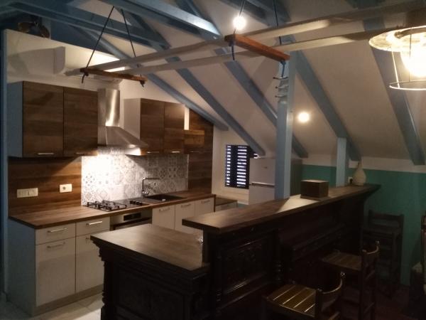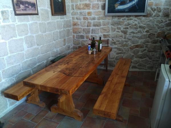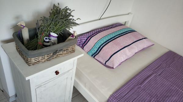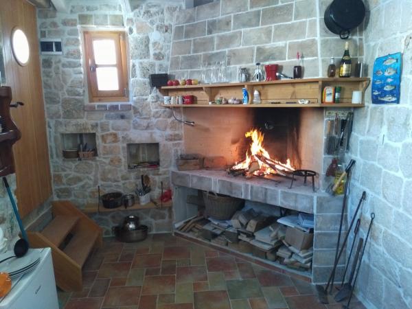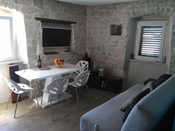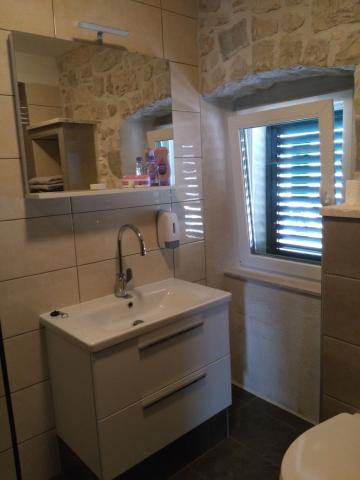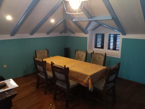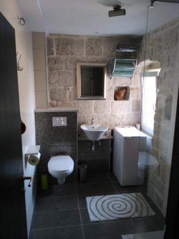 Residential tax is included in price. Booking confirmation document upon reservationThe house is unique in its architecture, in nature it is a very old stone villa with skylights on the roof, a veranda decorated with stone vaults and a terrace, and in front of which there is a courtyard adorned with a beautiful small stone house, in which there is a chimney with a grill and oven, and massive wooden benches and a table, thus creating a summer kitchen for exceptional gourmet get-togethers and experiences of local traditional cuisine, with homemade wine and brandy also available to guests. In front of the entrance to the apartments on the 1st floor, there is a large terrace (loggia) with a space where you can enjoy a cup of tea, coffee or a glass of wine. Smoking is also allowed here. A large terrace with wooden benches and a table in the courtyard next to the summer kitchen and a solar shower are available to guests. In the attic, on the 2nd floor, there is a large and spacious apartment with a large living room from which there is an exit to a spacious balcony, and two separate rooms, each with its own bathroom. One room has a double bed 200x160 and the other has two beds.