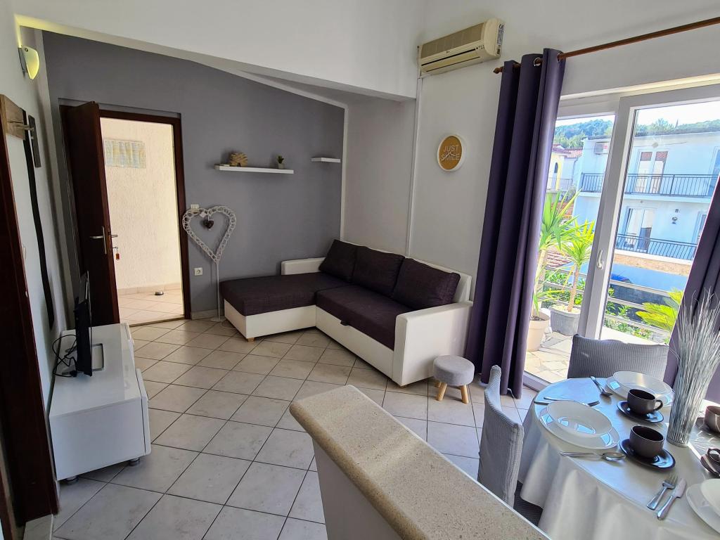Apartments Villa Palma in Slatine are 15 m from the sea. All apartments have a view of the sea. The apartments are comfortable and equipped with: air conditioning, sat/tv, wi-fi. They are located on an area of 1000 m2. In front of the apartment there is a beautifully decorated garden with a grill where you can enjoy socializing with friends with Mediterranean plants. They are located in an ideal position, 300 m from the center and 15 m from the sea, so that you can to spend in peace, enjoying the sea and the sun, and at the same time, if you want a more active vacation, in the center of the town there are beach bars, coffee bars, restaurants and sports grounds. Guests are provided with parking and a garage where you can leave your things for the beach. Also in front the apartment also has a garden of 150 m2, which is suitable for children's play while you watch the children in the garden from the terrace. The friendly hosts will be happy to help you organize your excursions, fish-picnic, rent a boat, bike, scooter... as well as everything among other things! Slatine is connected by a boat line with Split and Trogir several times a day!