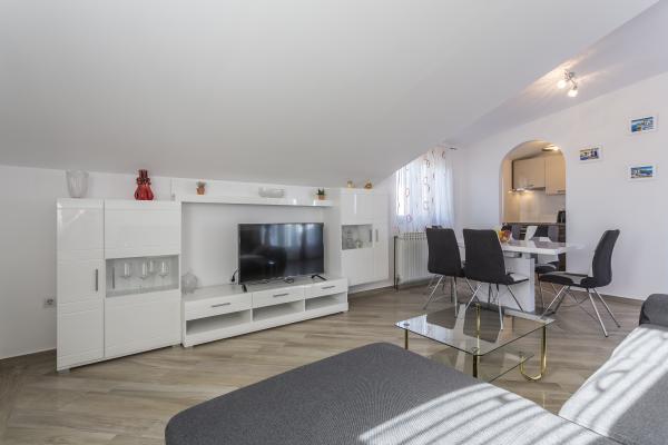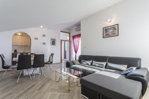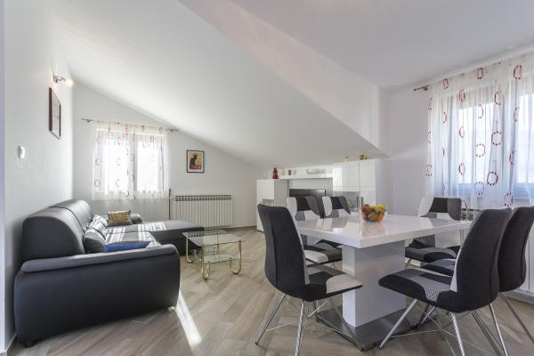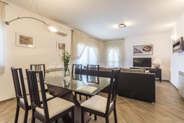 This spacious apartment is ideal for 4-6 persons, being a part of a private villa with the possibility of direct access by car and free parking in a quiet part of Split just 20 minutes to the city center by bus which stops very closeby. The apartments are fully serviced with air conditioning, WiFi internet, dishwasher, washing machine. We also offer a fully equipped kitchen, towels, linen, and all cleaning products.