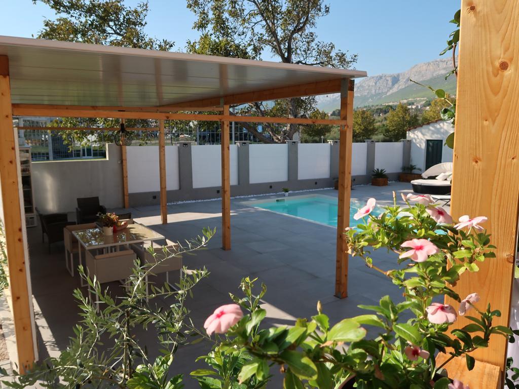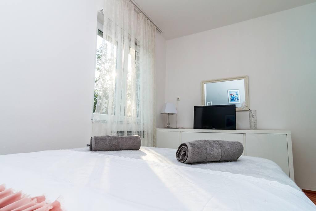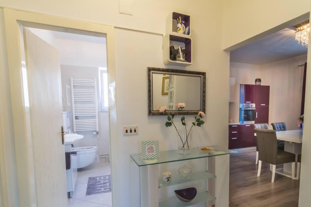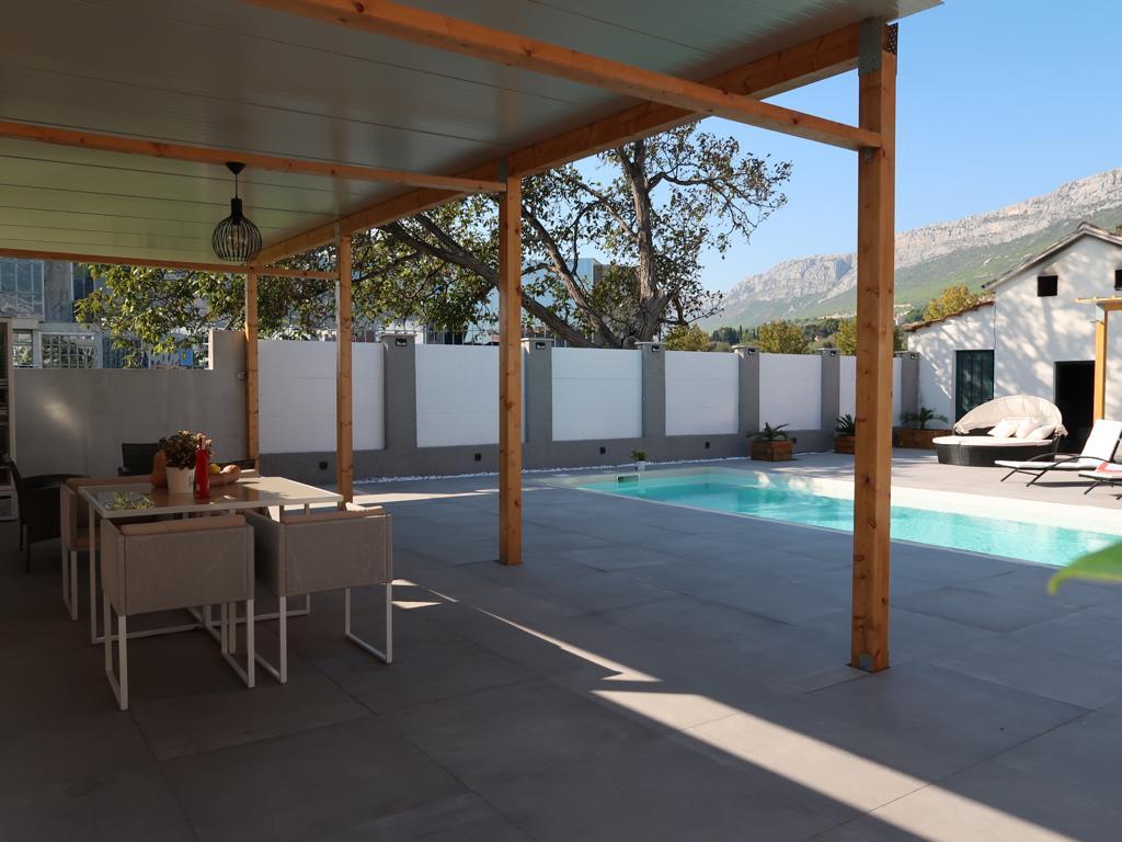 This modern furnished apartment of 85m2 is located in a house with big garden and private parking, offering a comfortable stay for 6 people. Apartment is spacious and very tasty decorated. There is a fully equipped modern kitchen with big table in the dining room. There is spacious living room with large comfortable sofa where you can take a rest after long day watching TV on flat-screen. There are also two bedrooms and big bathroom. The apartment also offers big private swimming pool. Apartment is located in the center of Solin. Its just a few minutes by foot from grocery shop, fish market, coffee bars, hairdreses, post office...Quiet and cozy place to stay.