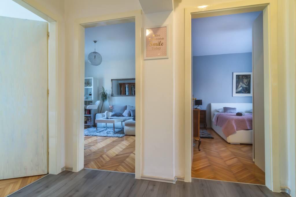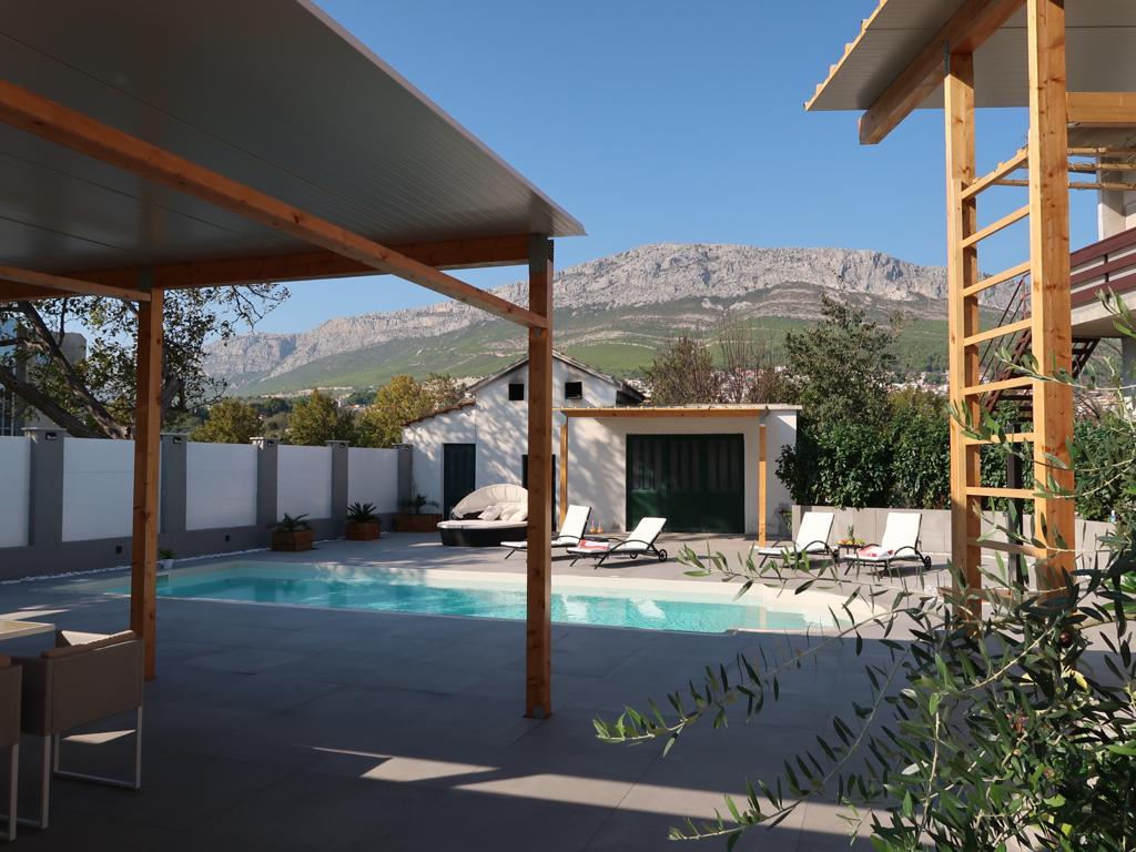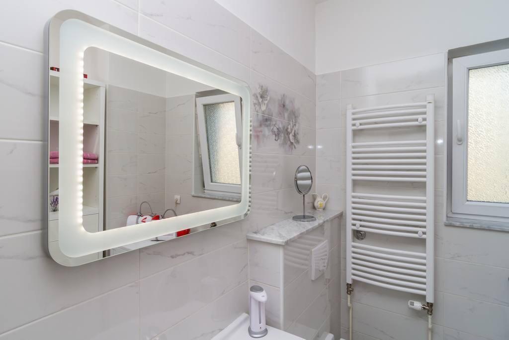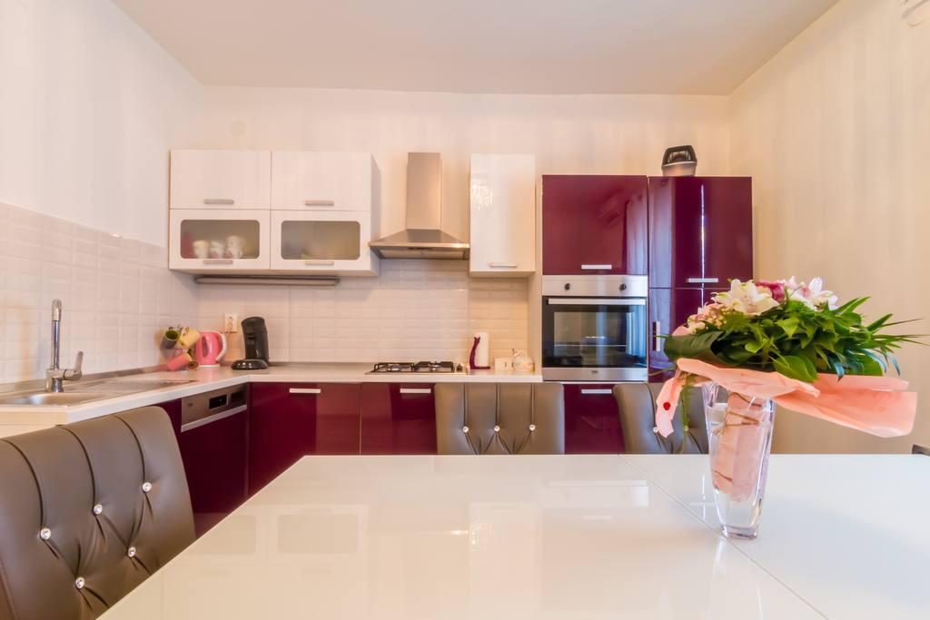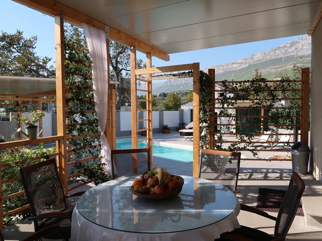 This modern furnished apartment of 85m2 is located in a house with big garden and private parking, offering a comfortable stay for 6 people. Apartment is spacious and very tasty decorated. There is a fully equipped modern kitchen with big table in the dining room. There is spacious living room with large comfortable sofa where you can take a rest after long day watching TV on flat-screen. There are also two bedrooms and big bathroom. The apartment also offers big private swimming pool. Apartment is located in the center of Solin. Its just a few minutes by foot from grocery shop, fish market, coffee bars, hairdreses, post office...Quiet and cozy place to stay.
