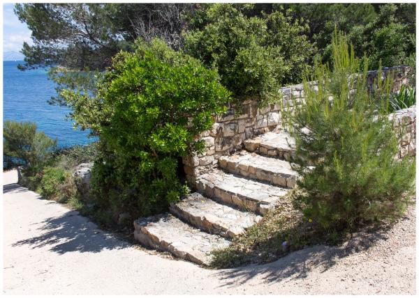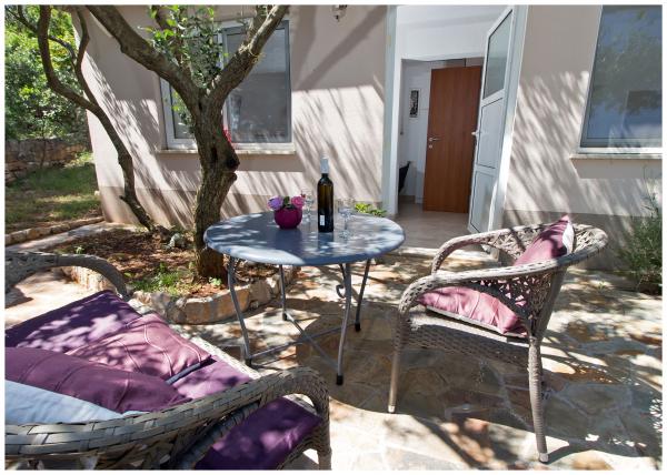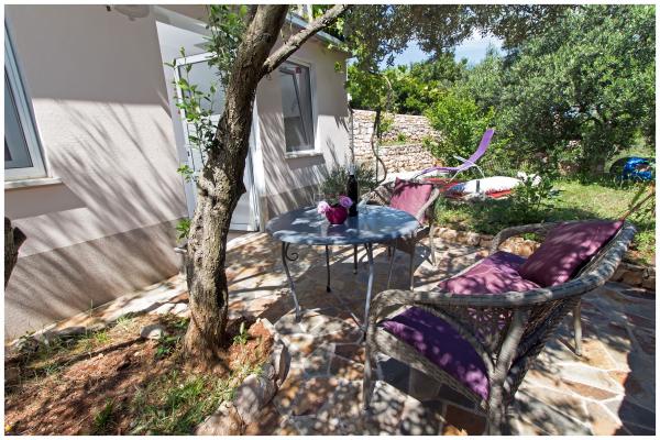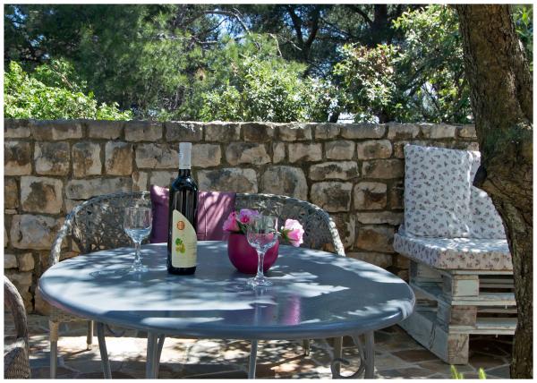 Residential tax is included in price.The welcome drink is included in the price, the possibility of renting boats and canoes. In the apartments there are detailed books about everything offered on the island of Solta, important phone numbers, a list of restaurants and more. Apartment 4 2 consists of two bedrooms and a large 25m2 space with kitchen and living room. It has a large lovely terrace with seating furniture. Below the ground floor is a small studio apartment that has its own outdoor terrace oasis in front of the apartment. There are no crowds or surrounding houses just nature, Mediterranean plants, bird twigs, waves of waves ...