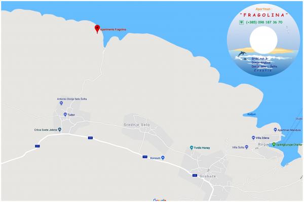 Apartments Fragolina are located in Donja Krušica, a small fishing village located in the cove on the north side of Šolta. It reaches Donje Krušice by a narrow road from Donje Selo, which can be reached by foot or by car. In the village is a small shallow harbor filled with fishing boats of the locals. There are no shops or restaurants in the settlement. Apartments Fragolina are separated from the harbor to the left by the Gratian War. It is necessary to cross a small steep hill. You can reach the apartment by car. The roads are narrow as well as on every smaller island. The place is ideal for tourists looking for a wilderness, so you can count on the peace and the beautiful nature. Below the house where the apartments are located, there is a mul with sun loungers. You can swim in the beautiful bay of Mala Krušica, which is a 5-minute walk away from the apartments. There is a possibility of renting the whole house, as well as a motor boat. Apartments are air-conditioned, parking is free as is WI FI.