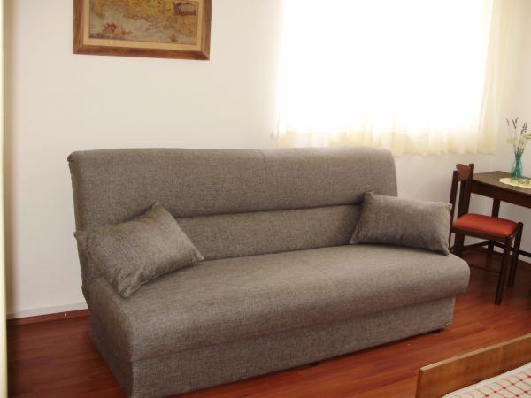 The cozy studio apartment is located in a quiet area (barrel), and not far from the historic center of Split, only four minutes walk to the beautiful sandy beaches. The apartment is located on the ground floor and consists of a fully conveyed kitchen (stove, refrigerator, cooking utensils and dishes) with dining table, bedroom with two single beds, two large closets and a comfortable sofa. Do bedrooms have toilet and bathroom with shower with hot and cold water. Not far from the suites (5 minutes walk) there are famous restaurants \\ Boban \\ \\ \\ Dvor and \\ \\ Pinpinella, where guests can enjoy superb food and Dalmatian specialties. Parking is public. For guests who prefer active holidays, a 3-minute walk away, there are tennis courts, košakarsko playground and walking trails along the coast and beaches to enjoy the warm summer nights. On Bačvice beach which is part of the promenade, there are a variety of restaurants. The historic city center and the famous Diocletian's Palace can be reached by walking slowly for about twenty minutes.