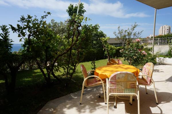 Modern, brand new apartment is located near one of the most beautiful beaches in Split - Znjan. The bright and spacious apartment is newly furnished and fully equipped with all you need for a comfortable stay. Apartment has a large terrace with a garden that overlooks the sea. It consists of a fully equipped kitchen, open living room / dining room, bedroom with a double bed and bunk bed, two bathrooms - one with bath and the other with shower, large terrace with garden and outdoor seating area. Amenities include: air conditioning, heating, LCD TV, fully equipped kitchen with refrigerator, stove, oven, crockery, dishwasher, washing machine, hair dryer, iron