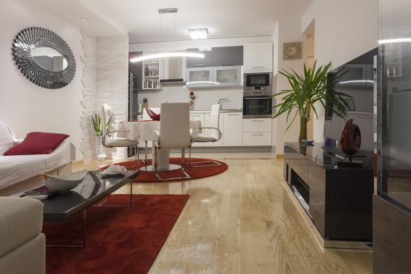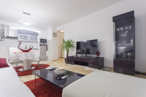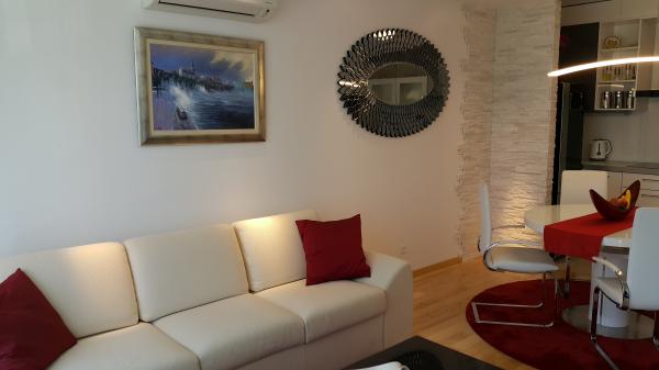 4 stars apartment, luxuriously furnished. Located on the first floor of the house, which is located in a quiet street, a 5 minutes from the pedestrian zone in the center and 10 minutes walk from the palace, which is under UNESCO protection. Stadion Poljud, where the festival is held Ultra, a 5-minute walk, how far is the nearest beach. We are also very close to our park Marjan (500 m) which is a green oasis and a major recreational center of the city. It is ideal for walking, running, jogging, cycling, tennis, soccer and swimming. There are several beaches and along its 10 km long coast in the summer, people bathe, resting in the shade of tall pines. Public transport is not needed, because all available within a 5-15 minute walk. . Floor area is 45 m2, plus balcony of 15 m2. It has a spacious entrance, one bedroom, living room, kitchen, bathroom and balcony. The bedroom has a bed (160cm x 200cm) and TV. The living room has a sofa bed