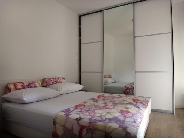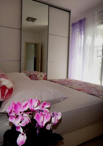 One bedroom apartment for 4 people, fully equipped, modern and air conditioned. It consists of one bedroom, kitchen, bathroom and terrace with garden. The room has a double bed in the living room sofa bed measuring 140 * 200cm. Parking is available in a closed garage and has the ability and external free parking. The whole building is under video surveillance. The apartment has adapted wheelchair. Distance from the sea is only 100 meters away and supermarkets, restaurants and bars are located in steps. In front of the building there is a bus stop with a line that leads directly to the city center.