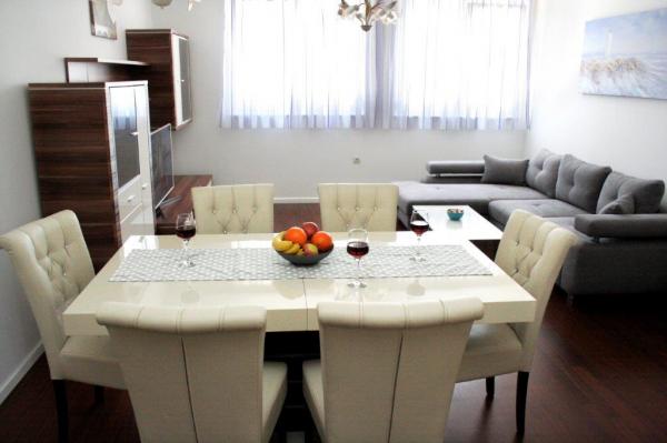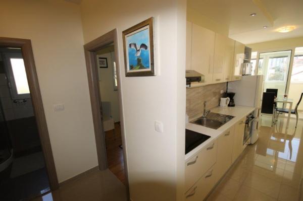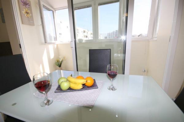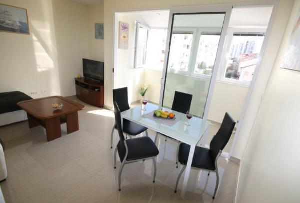 Completely and modernly equipped Apartment in a quiet part of town Split. The apartment is located on the third floor of a small building. It has two bedrooms, a bathroom, a kitchen with a living room and a loggia. Orientation east - north. Bright throughout the day. On the ground floor there is a mini bakery. Close to the Joker Shopping Center, gallery, museum, theater, 15 minutes walk to city center. Free parking in front of the building. Close to public transport.