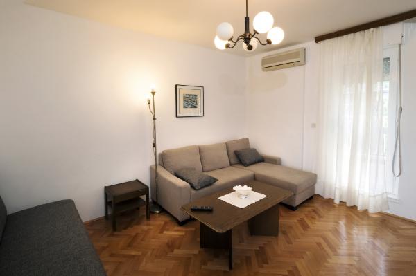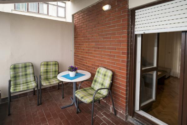 The apartment is in a small residential building with 8 flats only. The apartment is located on the the third, the last flat in the building. There are a very calm and friendly neigboroughood. On the south part of the apartment are dinning room, kitchen, living room and balcony covered with roof. form the balcony, and rooms are beattiful view on the sea and islands Brač and Šolta. In the balcony are table and chairs for the breakfast and cafe. On the north side of the flat are small and bigger sleeping rooms and bathroom small hall and built-in closet. The residential building is situated in a very urban city area, closed to the small store and supermarket, restaurant, bank post office in a area 100 to 300 meters. There is a bus station with very good bus line to the downtown. Also the ambulance and police station are very closed to the apartment. Bellow the apartment position is a the biggest city beach, on walking distance 5 minutes or 400-500 meters.