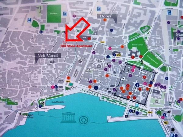 Old Stone House is located in the heart of Split in the part of town called Vela Varos. Town is full of old stone houses decorated with flowers and small narrow streets (streets) characteristic for Dalmatia. The apartment is located 650 m from Diklecijanove palace, 400 meters from the waterfront. A leisurely 15-minute walk you get to the Marjan hill, on whose shores you can swim and relax in the shade of pine trees. The sandy beach Bačvice, is located approximately 1300 m from the house (15 min walk). Very close are peškarija (market with fresh fish) and the market (market with fresh fruits and vegetables). The apartment is located on three floors. On the ground floor is a courtyard with barbecue, which is intended only for guests who are currently using the apartment. On the first floor there is a terrace, two bedrooms and a bathroom. On the second floor is the living room with kitchen and dining room. The kitchen has a refrigerator, oven, microwave oven, electric kettle, towels, napkins ... in the bathroom are soap, shampoo, power adapter, hair, hygiene bags ...