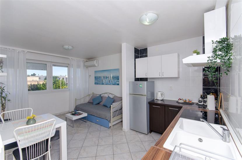 Relax with your whole family in this peaceful place to stay. The first apartment is a modern fully furnished two-bedroom apartment near the center, with a sunny balcony. It is located in a very nice and central part of Split, just 10-15 minutes walk from the Old Town and Diocletian's Palace. It is an ideal place for those who combine remote work and vacation: super fast and reliable internet, smart TV, workspace, air conditioning, dishwasher, washing machine, free public parking near the apartment. It is ideal for 3 people. The second apartment is located nearby, 5 minutes walk away and consists of one bedroom, living room with kitchen and bathroom. It is ideal for two people, and the third can sleep on the sofa in the living room. It has Wi-Fi, washing machine, air conditioning and free public parking around the building.