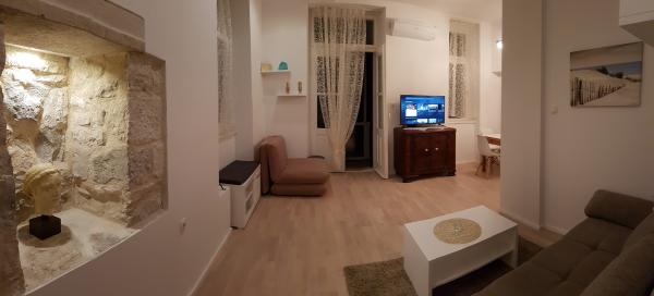 Residential tax is included in price.Within walking distance you will find : 1) 20 meters - 3 next door and over 15 over 500 meter, restaurants of wide variety of traditional Croatian and regional food choices. 2) Next door - Tommy Supermarket with all the necessities you might need. 3) 50 meters away, pharmacy is located on the ground floor of the building. 4) Next Door Rent-a-Car, also a bike, sailing and scuba-diving opts. 5) 100 meters away - The only Underground garage located in this part of Split center. 6) Ferry port is located 1 km away connecting you to all the nearby islands. 7) Bus station is located 50 meters from the entrance connecting you to the rest of Split and outsides of split. Bus map included on your arrival. 8) Direct line - Airport bus station is 600 meters away. 9) City Laundry Room is just 100 meters away.
