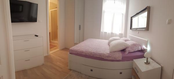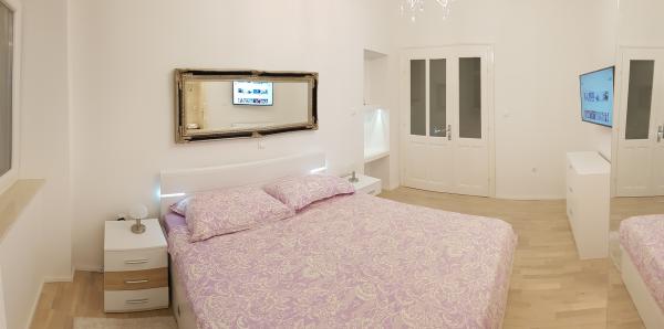 Located in the very heart of the Split, first row to the sea, 2 minutes walk to the historical UNESCO-protected Diocletian\s Palace. - Apartment \Luxor\ has 3, 1 meters ceiling height, giving you a rare, pleasant spacious feeling upon entering. The apartment itself consists of 52m2, is located on the first floor (without lift) of a land-marked house built in 1921, it has 1 master bedroom with a private Shower room, big hallway, 1 toilet room, living room and kitchen, and a stunning wall-hole with Wine offered from Dalmatian region. It has a 5m2 balcony equipped with chairs and a table to drink the morning cafe. -\Luxor\ is a highly modern and technological advanced apartment equipped with new age kitchen appliances, 50 Megabit flat internet connection with a Wi-Fi widespread modem. Two Samsung 4k Smart TV\s connected to internet with variety of applications (Netflix/HboGO/Youtube/F. B. , . . ), and a possibility to connect to your laptop. Samsung Inverter cooling unit with Wi-Fi and heating option.