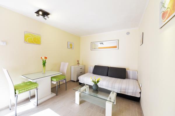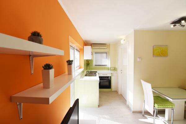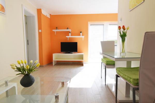 Apartment Orange is a modern apartment in center of Split and available for rent during a whole year. The apartment is situated in perfect location near Diocletian\s palace and a sea. This beautiful accommodation has a private terrace with table and chairs where you can enjoy and relax. There are fantastic places you can visit in a day trip. Discover the possibilities of renting this beautiful apartment and book your holiday in Split. The apartment and its surrounding area offer a unique combination of tranquility, adventure and natural beauty, and are therefore suitable for a holiday or honeymoon to Dalmatia. The accommodation has 1 bedroom where you will find a double bed. In the living room, there are a comfortable sofa, dinning table and TV area all connected to a kitchen. Next to the kitchen there is a beautiful bathroom with bathtub and a wash basin. Around the house, terrace is at your disposal, equipped with a lounge-set.