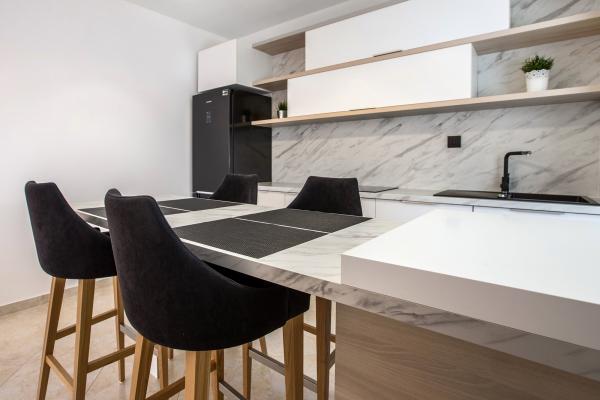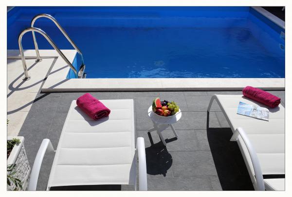 Modern furnished double rooms and apartments in a private villa with a swimming pool. Rooms are equipped with double beds, satellite TV, air conditioning and mini bar. Two-bedroom apartments consist of one bedroom with a double bed and a bedroom with two single beds; living room with sofa bed and a kitchen with a dining room. The villa is located in a quiet neighborhood, 1, 2 km from the beach Žnjan and 3, 8 km from the center of Split.