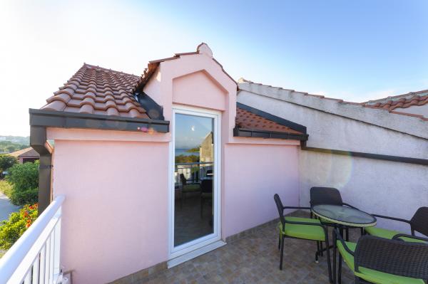 Modern apartments Nada placed in cents picturesque Sreser on the peninsula. The facility is located 10 m from the sea and 40 meters from the sandy beach. The apartments are very suitable for families with small children. The house contains two apartments, and each of them has its own terrace and private entrance. The beach is a 5 min can swim to the picturesque island of Our Lady Škoj.