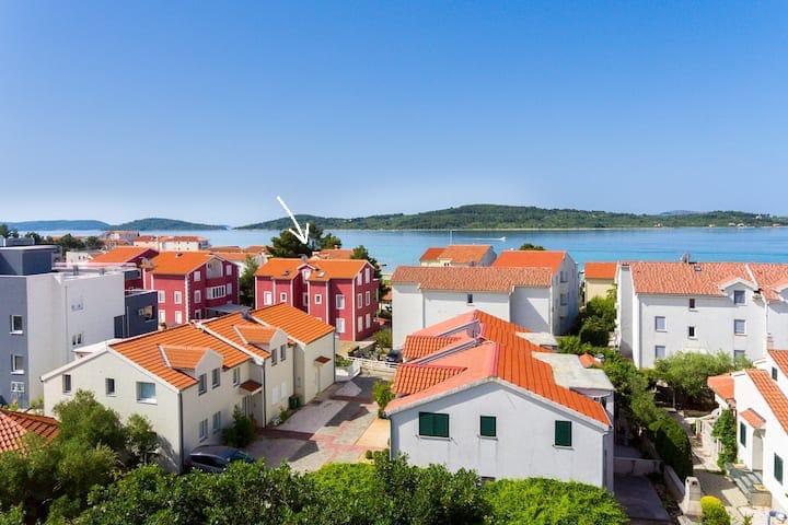 New and modern apartment in a quiet place in Srima near Vodice with a sea view. The beautifully landscaped beach is approx. 100 meters. The facility is located approx. 200 meters from the center of the village, and 25 minutes on foot (along the promenade) to the town of Vodice.