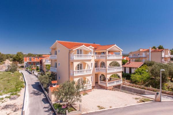 The apartments are located in the quiet town of Srima, next to Vodice. They are only a few minutes' walk from the beautifully decorated beaches and about half an hour's pleasant walk from the tourist center of Vodice. The apartments are equipped with air conditioning, new modern furniture, quality bathroom and TV. In the yard of the house there is a large barbecue free for use.