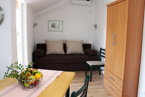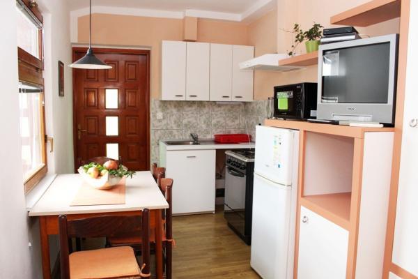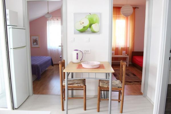 Read more Accommodation unitsPayment is made exclusively in cash in euros upon arrival at the apartment minus the amount of the advance payment that must be paid for the reservation of the apartment. The minimum advance payment is 150 euros, which is paid to our giro bank account and depends on the length of stay. Entry to the apartment is possible after 2 pm, and departure must be by 9 am. The use of air conditioning is not included in the price and it is paid separately for 5 euros per day if you want to use it. An additional person pays 5 euros per day. A short stay of up to 3 days is paid at an increased rate of 30%. We do not provide towels for the bathroom or for the beach, nor do we provide personal hygiene products, so guests are asked to bring these with them. We cannot accept people in wheelchairs or people with infectious and skin diseases. Pets are not allowed. Smoking is allowed only on the terrace.