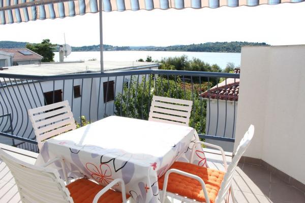 The apartments are located in a house that is in the first row to the beach, about 10 m from the beach. We have two-room, one-room and studio apartments for 2-5 people. The most comfortable and largest apartment has 2 separate bedrooms + a living room with a sofa, a separate kitchen with a dining room and a spacious terrace with a beautiful view of the sea. The terrace can be accessed from the living room or from the dining room. It has a bathroom with a toilet and another additional toilet. There is a parking lot in front of the house in the fenced yard. The beach is in front of the house, which is shallow and suitable for children and adults. It is fenced with buoys for bathers and is shaded by rows of tamarisk trees. It is concreted for comfortable sitting, lying or sunbathing. In the immediate vicinity of the house there is a reputable restaurant (20 m) and in the vicinity there are a dozen more restaurants and cafes, pastry shops and stores for bathing and beach equipment. Nearby there are also 2 food stores, Konzum and Tommy, about 200 m away. The center of Srima is about 200 m away. it is about 2 km to the center of Vodice, suitable for walking.