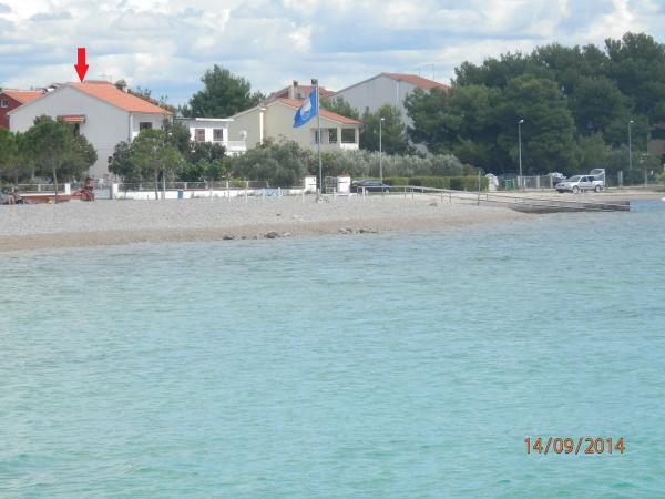 The house is located in Srima next to the sea with sandy beach suitable for children. Pebble beach with a Blue Flag, which means clear water and a high standard of organization of the beach is located at 30 meters from the house. We have two apartments that are located in the ground floor of the building, each with its own courtyard entrance, parking, barbecue, Internet, satellite TV and terraces overlooking the sea. The first apartment has one bedroom with an extra bed, living room with a kitchen where there is a sofa bed, bathroom and hallway. Another apartment consists of two bedrooms, kitchen, bathroom and hallway.