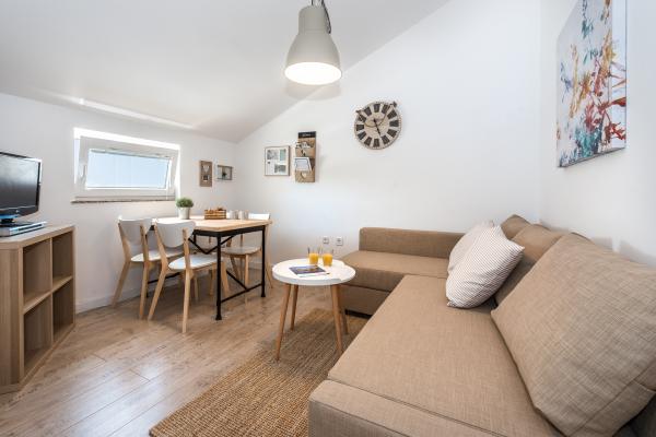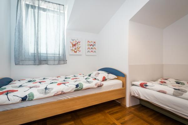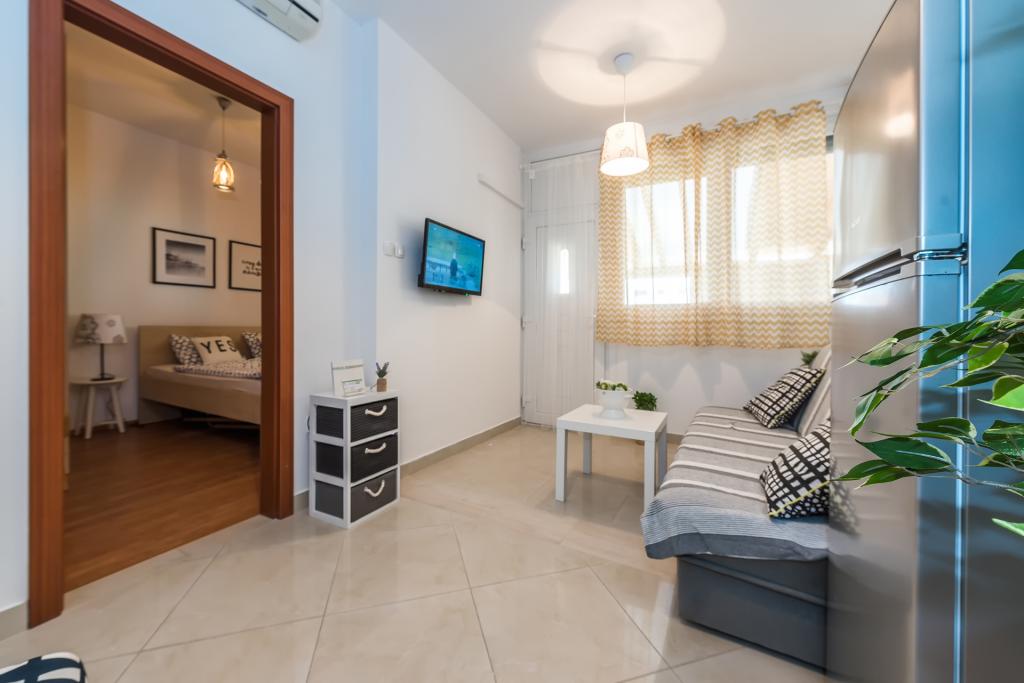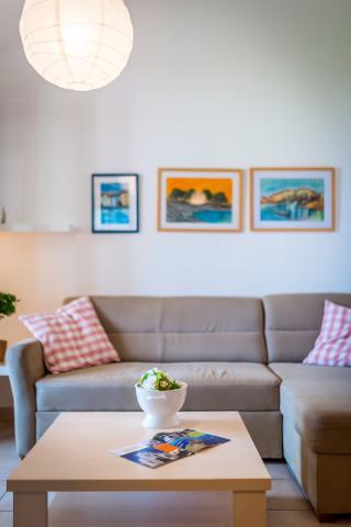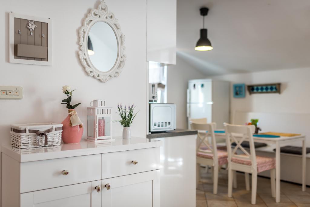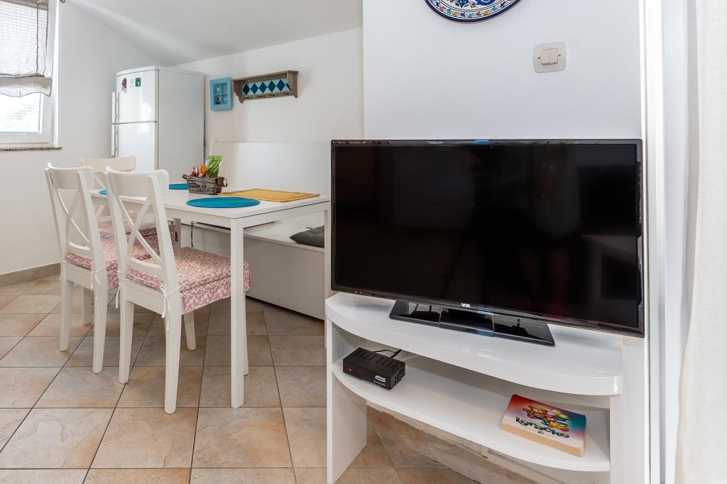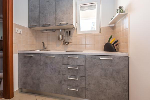 Modernly equipped apartments in Srima near Vodice, located 100 m from the beautifully decorated beach, winner of the Blue Flag. The facility is located 100 m from the town center and a 20-minute walk along the seaside promenade to Vodice. Apartment Karla is located on the ground floor and has a large terrace and a garden of 80m2. In the garden there is a new summer kitchen with a barbecue. The apartment has two bedrooms, a living room, a bathroom, a kitchen, a loggia and a terrace. The kitchen is equipped with all modern household appliances. Apartments Mara, Ana and Ivan are located on the first floor of the facility, measuring 50m2-55 m2. They are decorated with new furniture in a shabby chick style and are extremely comfortable to stay in. They consist of two bedrooms, a bathroom, a hallway, a living room, a kitchen and a loggia. The kitchens are equipped with the latest appliances and the necessary dishes and utensils. Apartment Jo the Star (35 m2); on the ground floor, has a 30m2 terrace with a barbecue and garden furniture