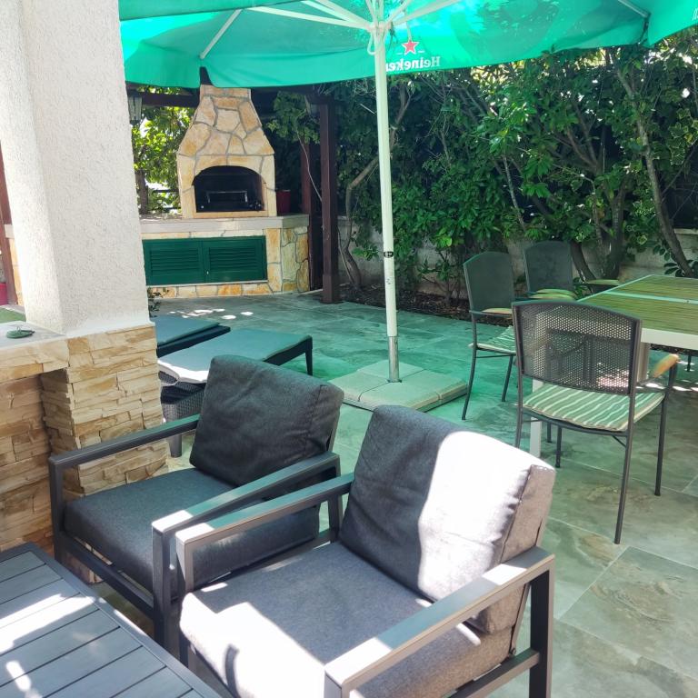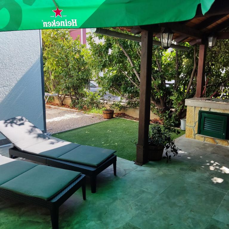 Apartment Karla and Jo have private barbecues with large terraces, while Apartment Karla also has a lounge area, sun loungers and an outdoor shower. WI-FI Internet is free. Boat rental is available 100 m from the property. Krka National Park and Kornati National Park are in the immediate vicinity of Srima. Organized excursions to nearby islands and national parks can be booked 200 meters from the house. All apartments have air conditioning, satellite TV; WI FI, washing machines, dishwashers, microwaves, toasters, kettles, parking. A beautiful beach is only 100 meters from the property. On the beach there are restaurants, cafes, shops, a fruit stand, a newspaper stand, an ice cream shop, a children's playground, a bowling alley, etc.
