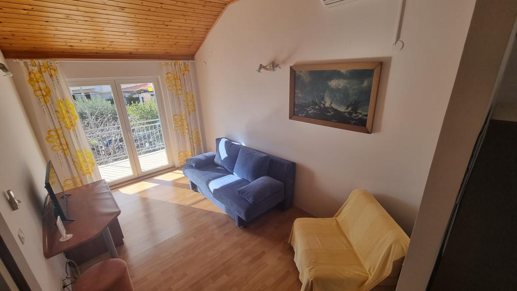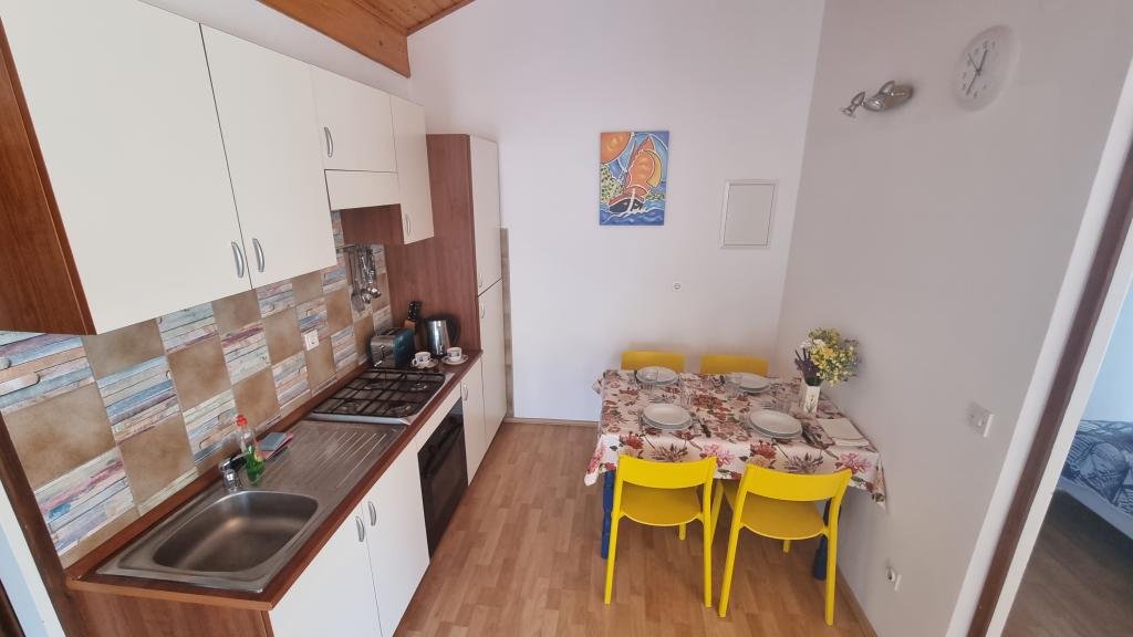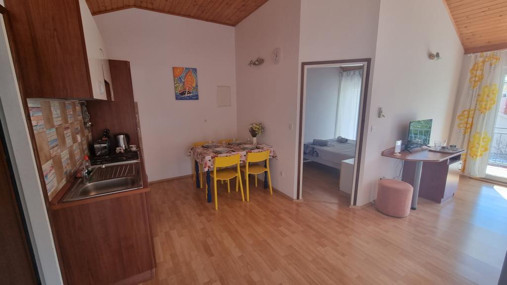 Free appointments for the 2022 season: App 2+2 - after 27.8. App 2+1 - 28.8. - 3.9. (8 days) and after 15.9. The apartments are located in the suburb of Vodice - Srimi. We offer 3 apartments. On the first floor of our house there are apartments 2 2, and on the ground floor there is a studio apartment 2 1. All apartments are air-conditioned. Shaded parking is provided for each apartment. In the garden, there is a garden with a barbecue and a children's playground at your disposal. The house is located in a side street, so it offers peace and privacy. It is 200 m to the beach and 150 m to the shop. The town center (Srime) is 500 m away, and the center of Vodice is about 2 km or a 20-minute easy walk.