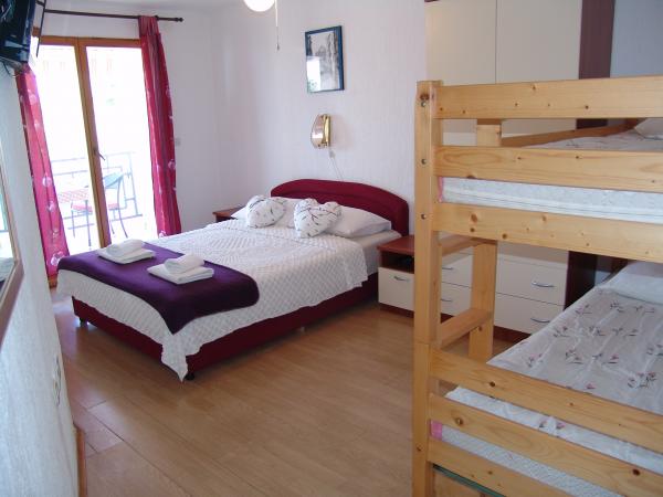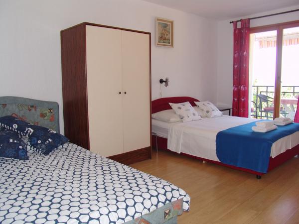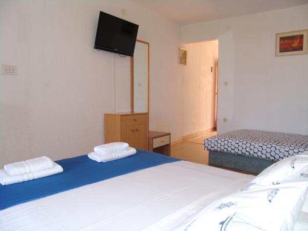 Apartments "Pepi" are located in a small place Stara Baska, which offers numerous tourists an experience of stay in pristine nature. A range of beautiful beaches is only 50 meters away from the apartments. The apartments are located on the first floor of a family house. Each apartment offers accommodation for two adults and children, and has its own balcony overlooking the sea and the nearby islands of Cres and Lošinj, and a small "Galun" islet located in front of Stara Baska itself. In front of both apartments there is a large covered terrace.