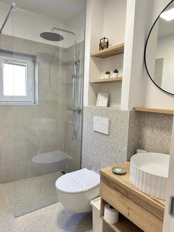 Surrounded with greenery, Sunshine Residence is set in Stara Baška, 150m from the sea. The house is located in the heart of the village and just steps from the beach. Choose between several apartments which can accommodate 2-5 people each with a private sea view balcony or terrace. You will enjoy wi-fi, access to a barbecue grill and all it’s accessories, as well as towels and linens. Whether you choose the apartments of 25m2 or the apartments of 50-60m2 you will be rewarded with a terrace or balcony where you can enjoy long summer evenings with your friends or family. There is a parking stall provided for each apartment for your convenience. Enjoy the relaxing atmosphere and the peace and quiet or go for a hike or swim. We look forward to hosting your time away to make it all you can dream of.
