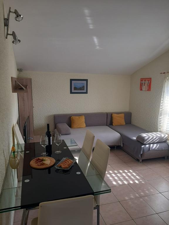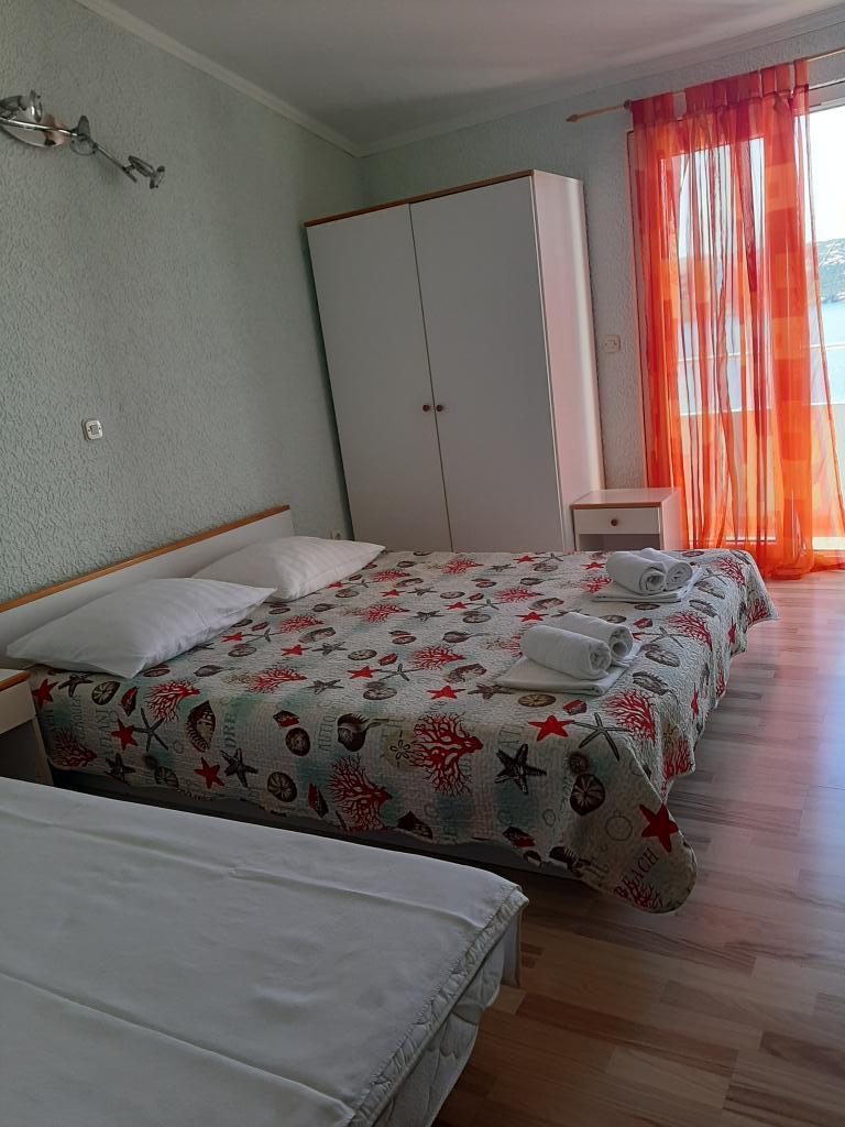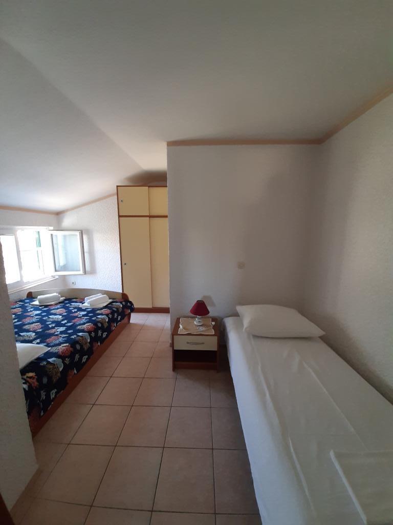 Apartments Zlata are family accommodation located 5m from the sea. Three apartments are for rent, located on the second floor of the family house, the accommodation has its own private parking. The apartments have a shared hallway, consist of a kitchen and dining room, bathroom and bedroom with a double bed and an extra bed. The apartments have their own balconies, in front of the family house by the sea there is a social area that can be used by all guests of the facility, and it includes tables, chairs, a barbecue, umbrellas, deck chairs and a shower on the beach. Possibility of mooring for a small boat. An advance payment is required as confirmation of the reservation. Tourist tax is included in the price. For all inquiries and dates, we are available via e-mail or telephone. We look forward to your arrival!