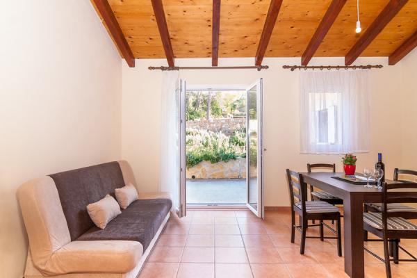 If you seek not only for a holiday, but also for a break from modern tehnologies and too busy modern life, we can offer you a place for a full rest for your body and soul. These apartments are located in the peaceful Borova bay, where in the vicinity you can find only several houses (first neighbour is 100m away). The house is located about 50 m from the sea. In the house we offer two apartments. The smaller one is for 2 2 persons, while the bigger one is for 4 1 persons.