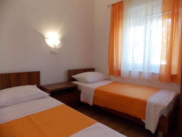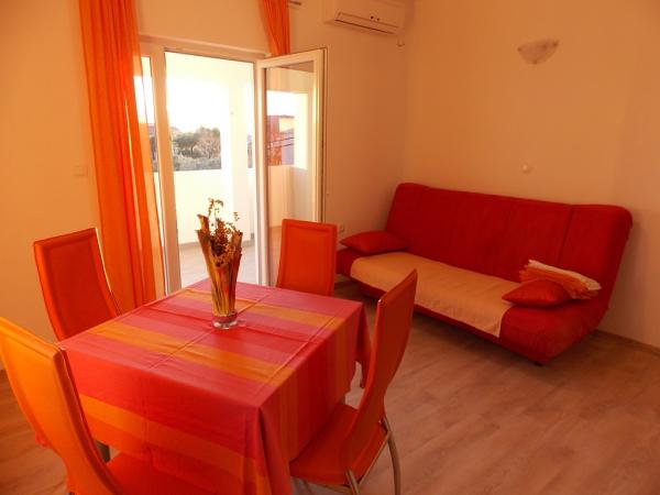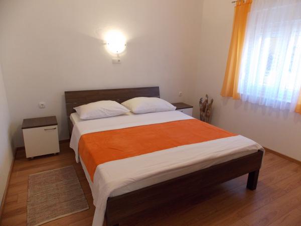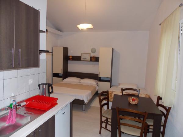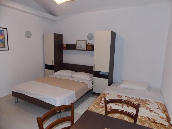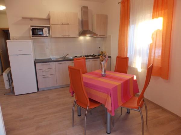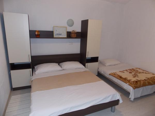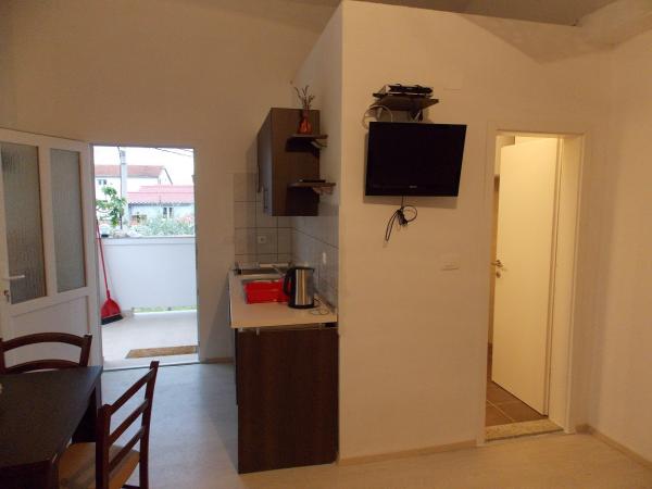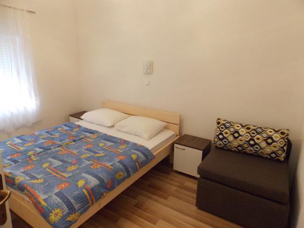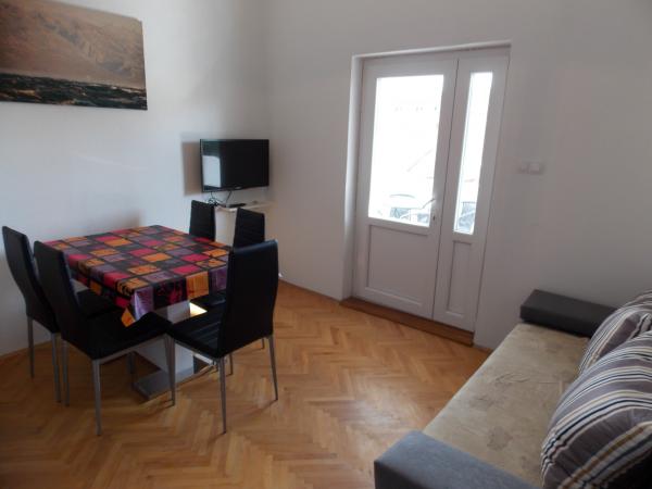 Fully equipped apartments in a quiet area of Old Town 150m away. From the sea. Around the building is a large yard with outdoor grill. Suitable for larger families with children. Smaller apartment is a special facility suitable for one family Mobile home is located 10 meters away from the sea and sandy beach In the mobile home there are two bedrooms and next to the kitchen toilet bathroom and large terrace