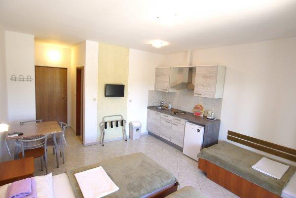 Paklenica Sport Apartments are located in Seline (Starigrad) on the coast near the entrance to Velika Paklenica Canyon National Park. Paklenica Sport Apartments were completely renovated in 2013 including new furniture and equipment. Apartments on the first floor have balconies while the ground floor apartments have terraces. Each apartment has a kitchen, including a stove, sink, complete cooking utensils, cutlery and crockery, fridge. Some apartments have a dishwasher. All apartments are air conditioned. In the basement is a washing machine for use by guests. All apartments are equipped with LCD TV and satellite TV. Cable and / or Wi-Fi internet access is available in all areas and is free for guests. In the courtyard there is a barbecue, sun terrace, awnings and umbrellas and outdoor shower. We offer bikes for rent at a discounted price. The apartments are non-smoking. The apartment is located a cafe, lounge and sauna and jacuzzi.