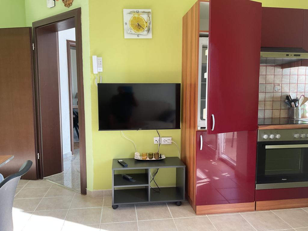 Nice, clean apartment with an outdoor pool. The apartment has a terrace, a well-equipped kitchen, a living room with a sofa and a TV, and a bedroom with a comfortable bed and a spacious wardrobe. The hosts are very friendly and communicative. They help with advice on what is worth seeing in the town, where are the good restaurants, and the best beaches. Affordable price for the service they provide.